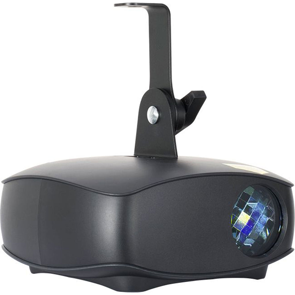 The Eliminator Lighting Cosmic Burst is a futuristic Moonflower effect with high output powered by a 10W laser module. It creates hundreds of white, yellow, green and blue beams of light that rotate back and forth from two independent mirror dishes. Its massive beam spread makes it ideal for projecting on ceilings and walls at nightclubs, roller rinks, fun centers, stages and live events, and works with or without the use of atmosphere in the air (fog/haze).