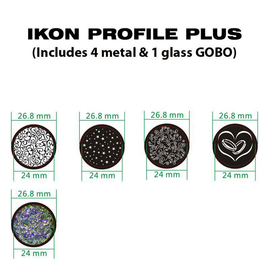 The Ikon Profile Plus' power and flexibility also make it the perfect projector for houses of worship, nightclubs, bars, stage productions and event retail outlets. For these bigger events, where the fixture is highly effective used in multiples, the Ikon Profile's power outlet allows the power for up to 14 units to be daisy-chained at 120V (24 @ 230V), for a widespread lightshow that really packs a punch!