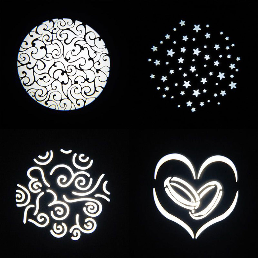 - Includes 1 Glass Gobo, 4 Metal Gobo's and 1 Gobo holder