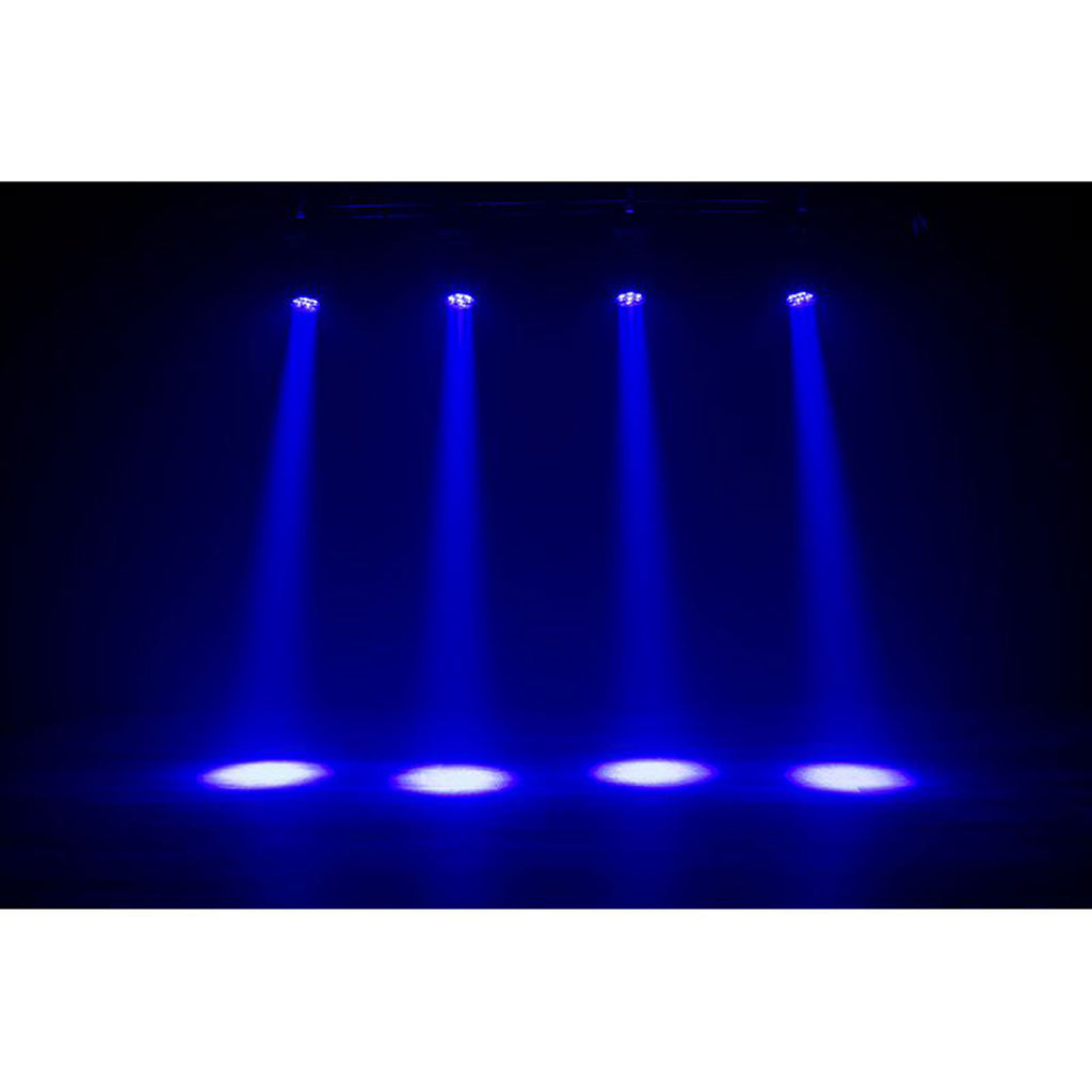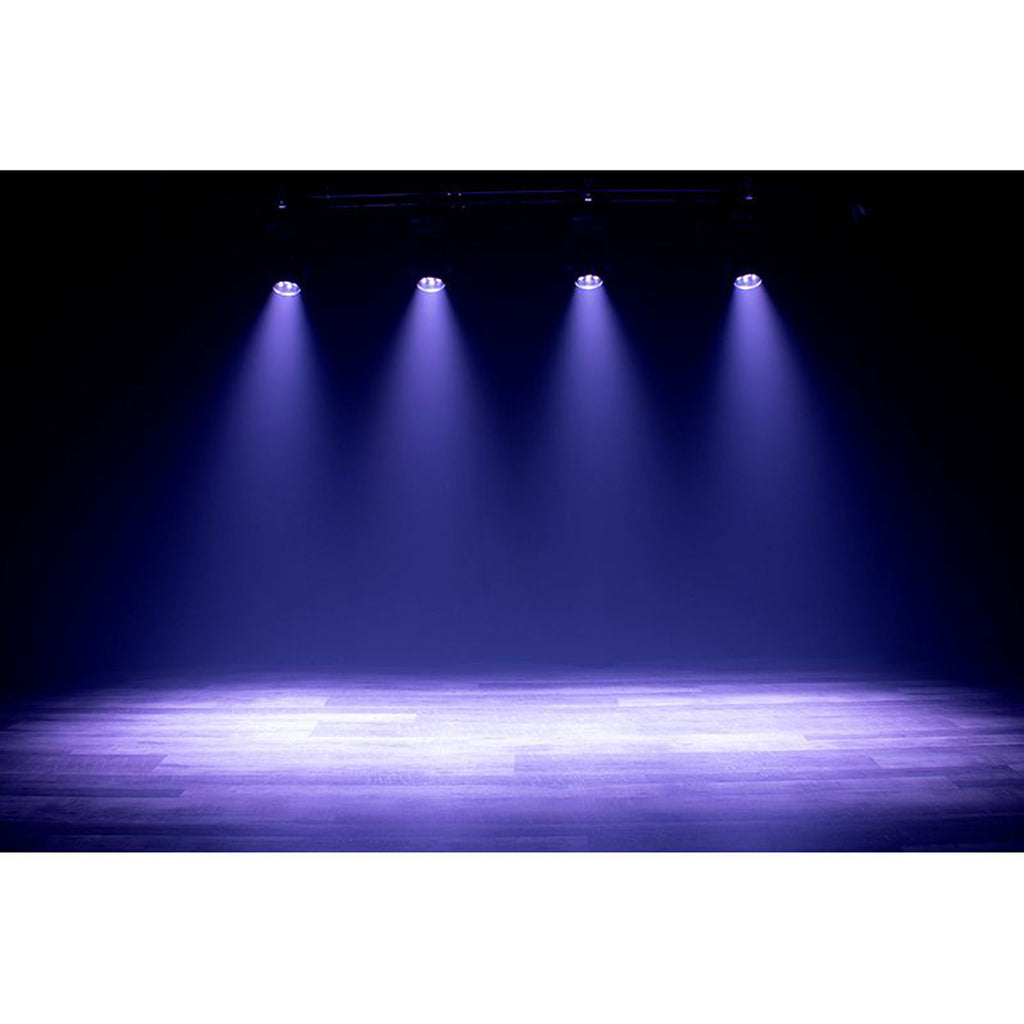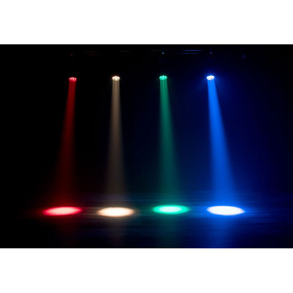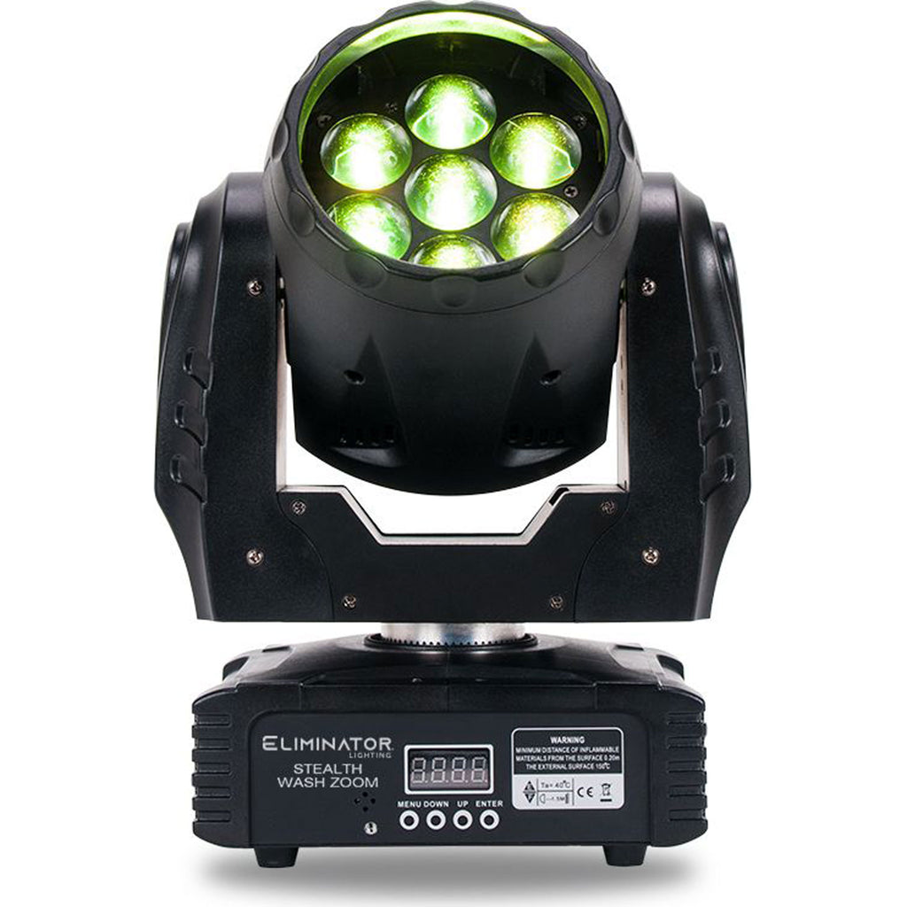 The Eliminator Lighting Stealth Wash Zoom is a compact wash moving head with motorized zoom and is powered by seven 12W RGBW LEDs. This fixture is great for low ceilings and small stages. It features full color color control and a tunable white channel that allows users to choose different white color temperatures.