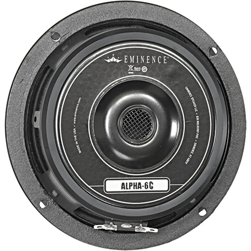 Recommended for professional audio midrange applications in a sealed cabinet, or as a mid-bass in a vented satellite enclosure. The Alpha-6C boasts a 4-ohm impedance, increased body weight, and stiffer, more aggressive water proofing treatment on the cone making it ideal for car audio use.