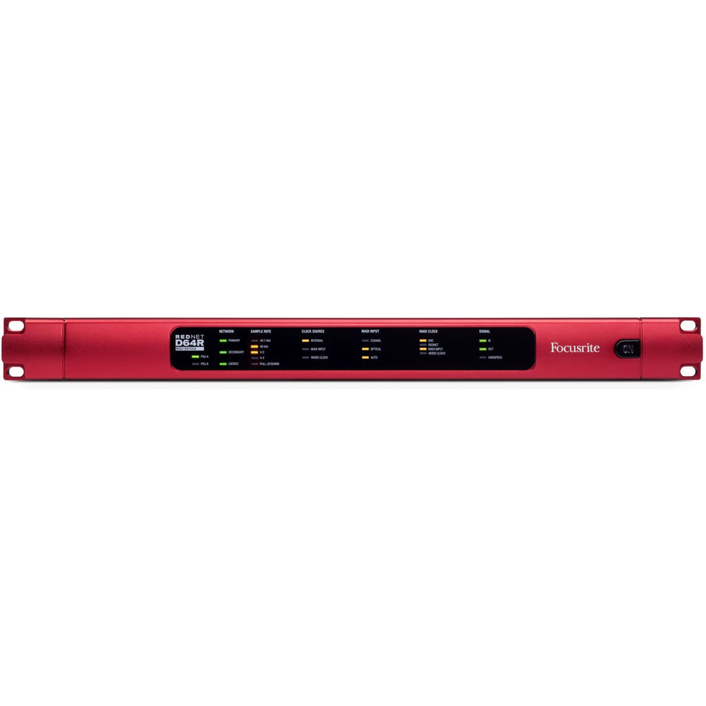 RedNet D64R provides the link between a Dante Ethernet-based audio system and any MADI / AES10 setup. D64R supports up to 64 channels of both coaxial and optical MADI interfaces and is completely bi-directional, allowing the use of any Dante components including RedNet's high quality interface products with a MADI system - or MADI components with a Dante system. D64R features a sample rate converter (SRC) on each input and output allowing interfacing between MADI and Dante irrespective of the sample rate at which either system is operating. Connect a Dante network to MADI-based digital consoles, computer cards, converters and much more. In addition to both coax and optical MADI interfaces, RedNet D64R provides Word Clock in and out. The D64R features a rugged, roadworthy exterior and high internal build quality, with Ethernet and power supply redundancy. In addition, it offers a compact 1U rack-mount form factor for a full 64 channels of I/O.