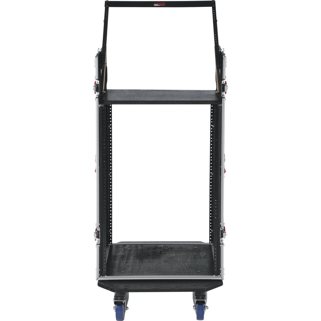 ATA Wood Flight Pop-Up Console Rack Case; 10U Top; 16U Bottom; w/ Casters