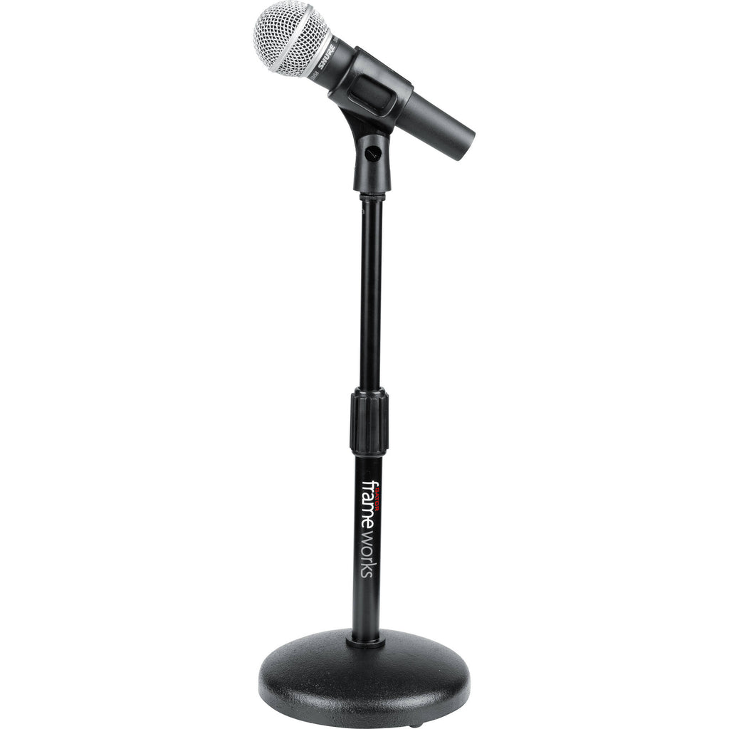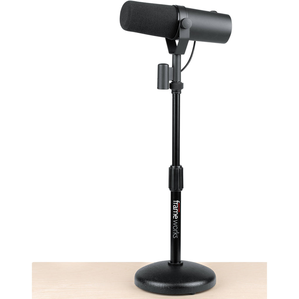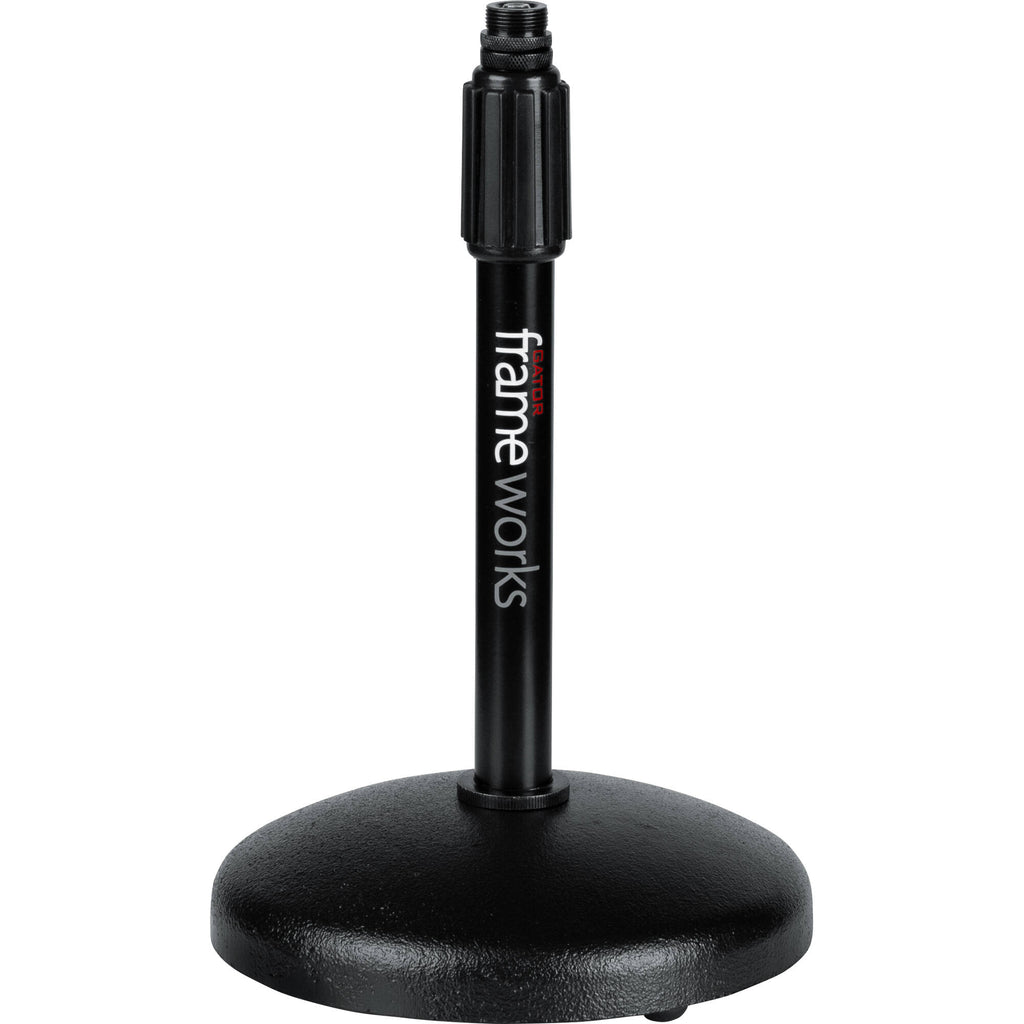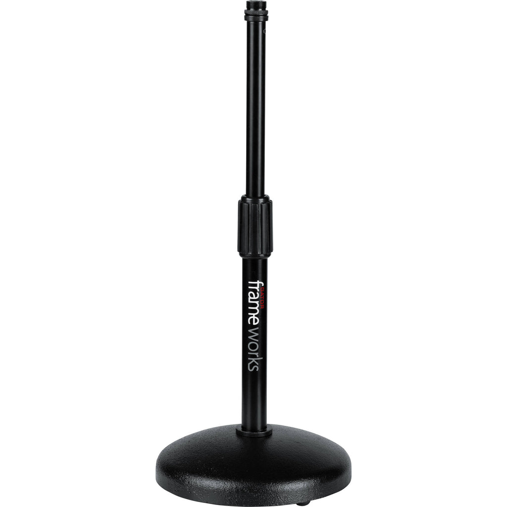Use this Gator Frameworks Round-Base Desktop Mic Stand to mount microphones in a variety of scenarios. It works great supporting a mic for podcasts, broadcasts, voiceovers, and other forms of desktop recording. It's also the perfect height to mic a kick drum or low-profile amplifier cabinet.