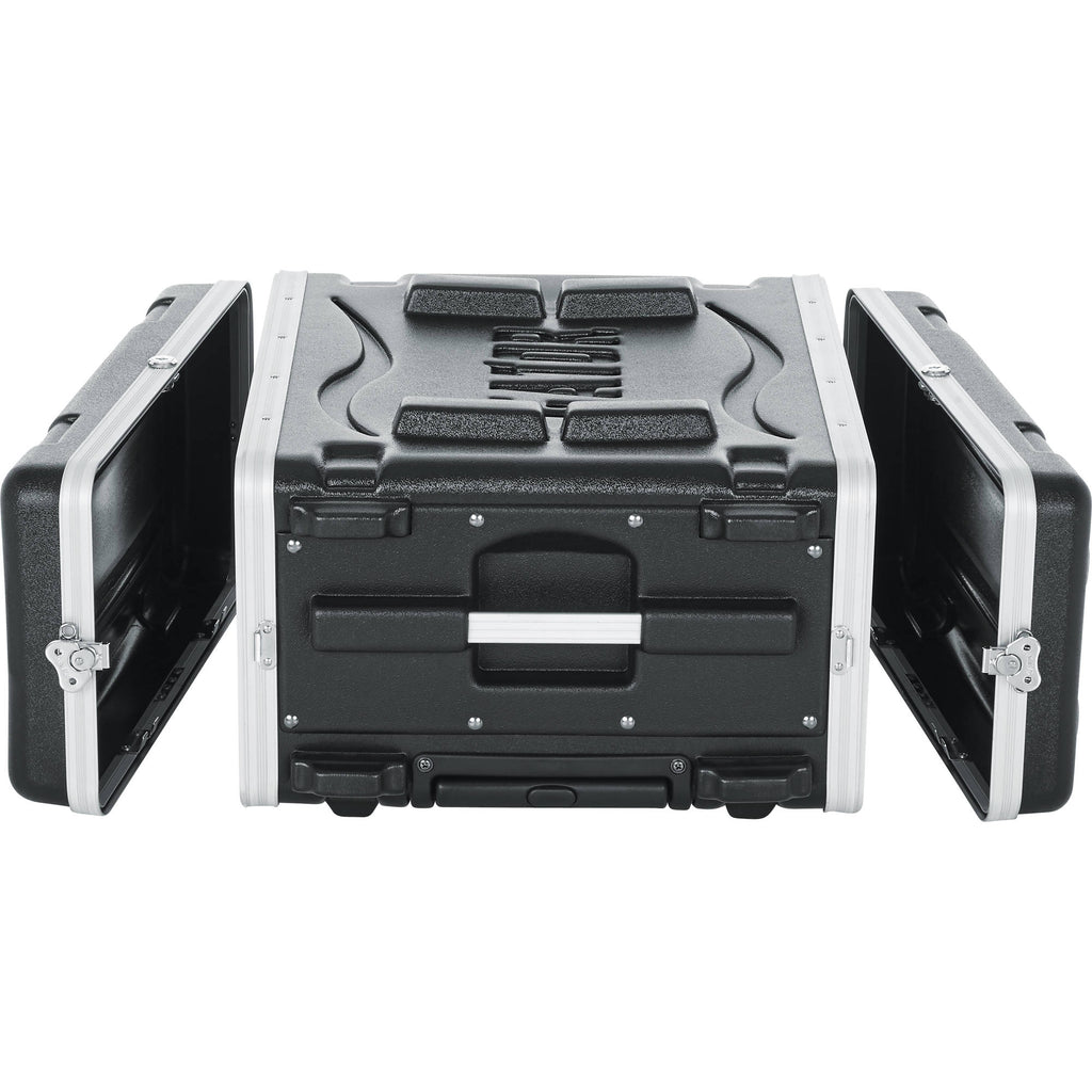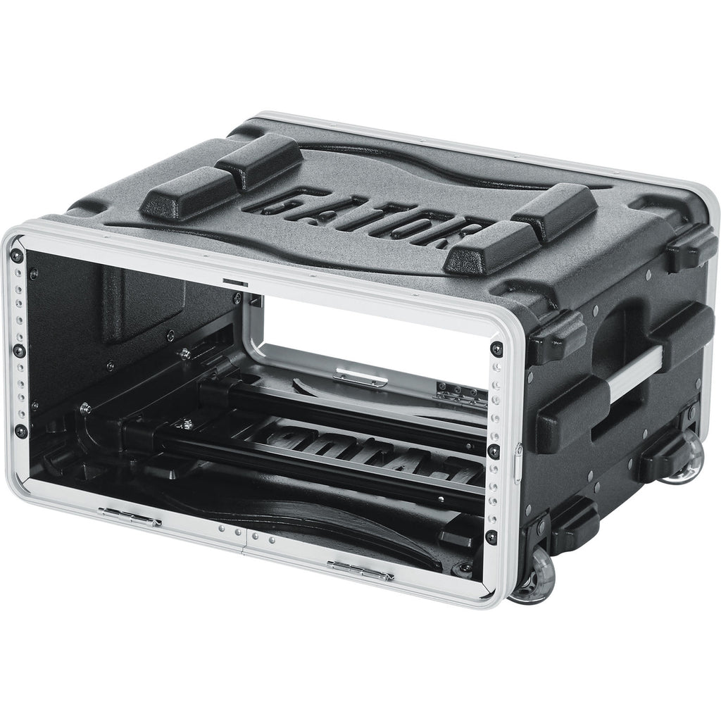 Molded PE Rack Case; Front, Rear Rails; 4U; 19" Deep; Locking, Pull Handle, Recessed Wheels