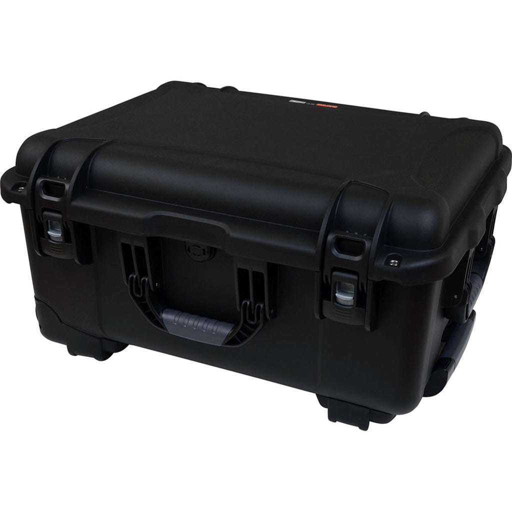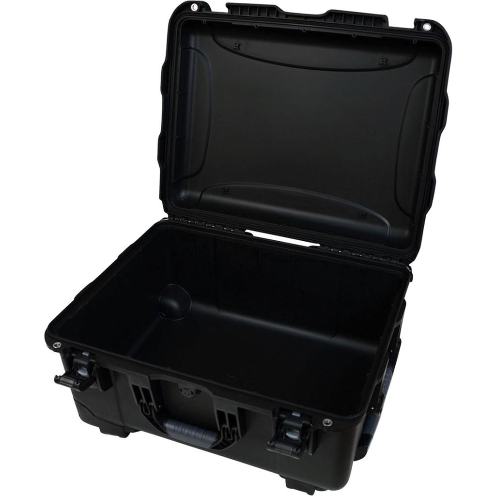 Black injection molded case with pullout handle and inline wheels. Interior dims 20.5" x 15.3" x 10.1". NO FOAM