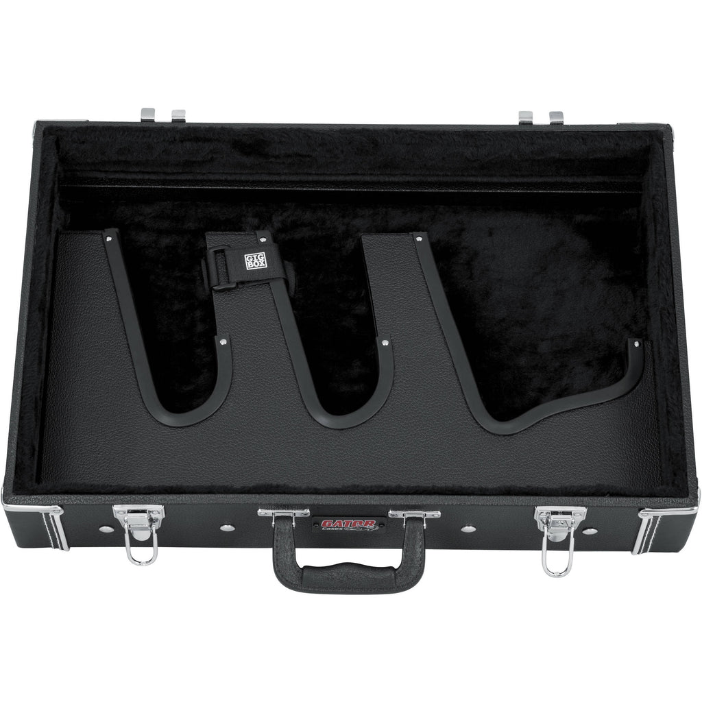 Gig-Box Jr. All-In-One Pedal Board and 3x Guitar Stand Combo in a Classic Wooden Case includes 21.5" x 15" Pedal Board Surface w/ G-BUS-8 Power Supply w/ (8) 9V & (3) 18V Outputs & Cables
