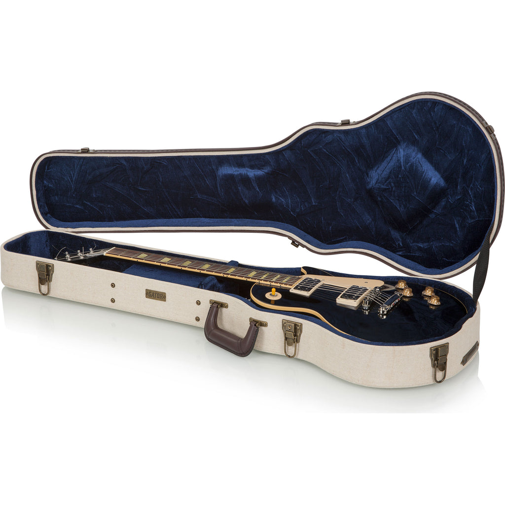 Deluxe Wood Case for Les Paul Style Guitars; Journeyman Burlap Exterior