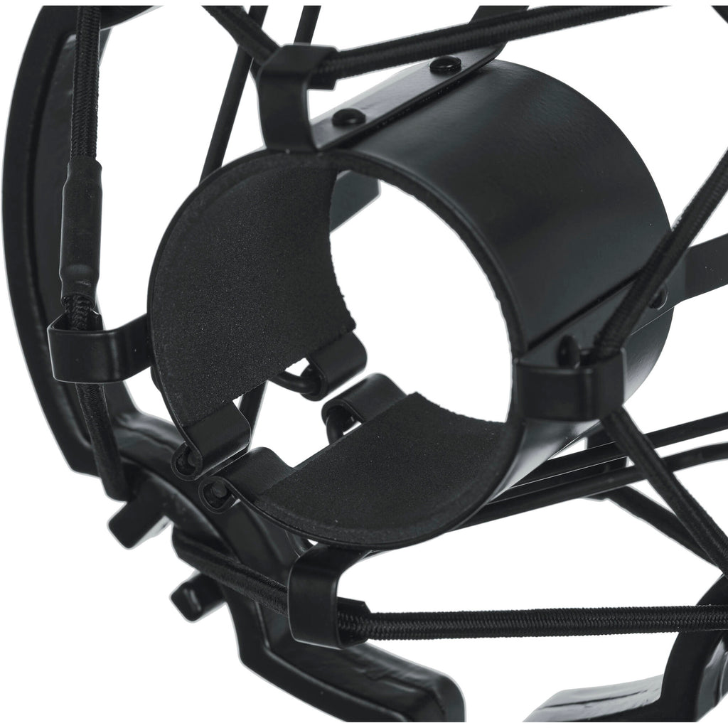 The black, powder coated steel mount features an angle-adjustable 5/8-27" thread ready to attach to a standard mic stand. The inner ring that secures the microphone adjusts to accommodate smaller studio mics ranging from 42 to 48mm (1.65 to 1.89") in diameter. A sturdy spring clip opens and closes the ring while an EVA foam interior protects the mic from scratches.