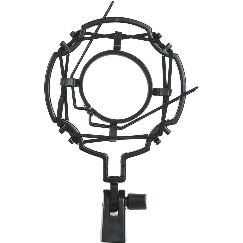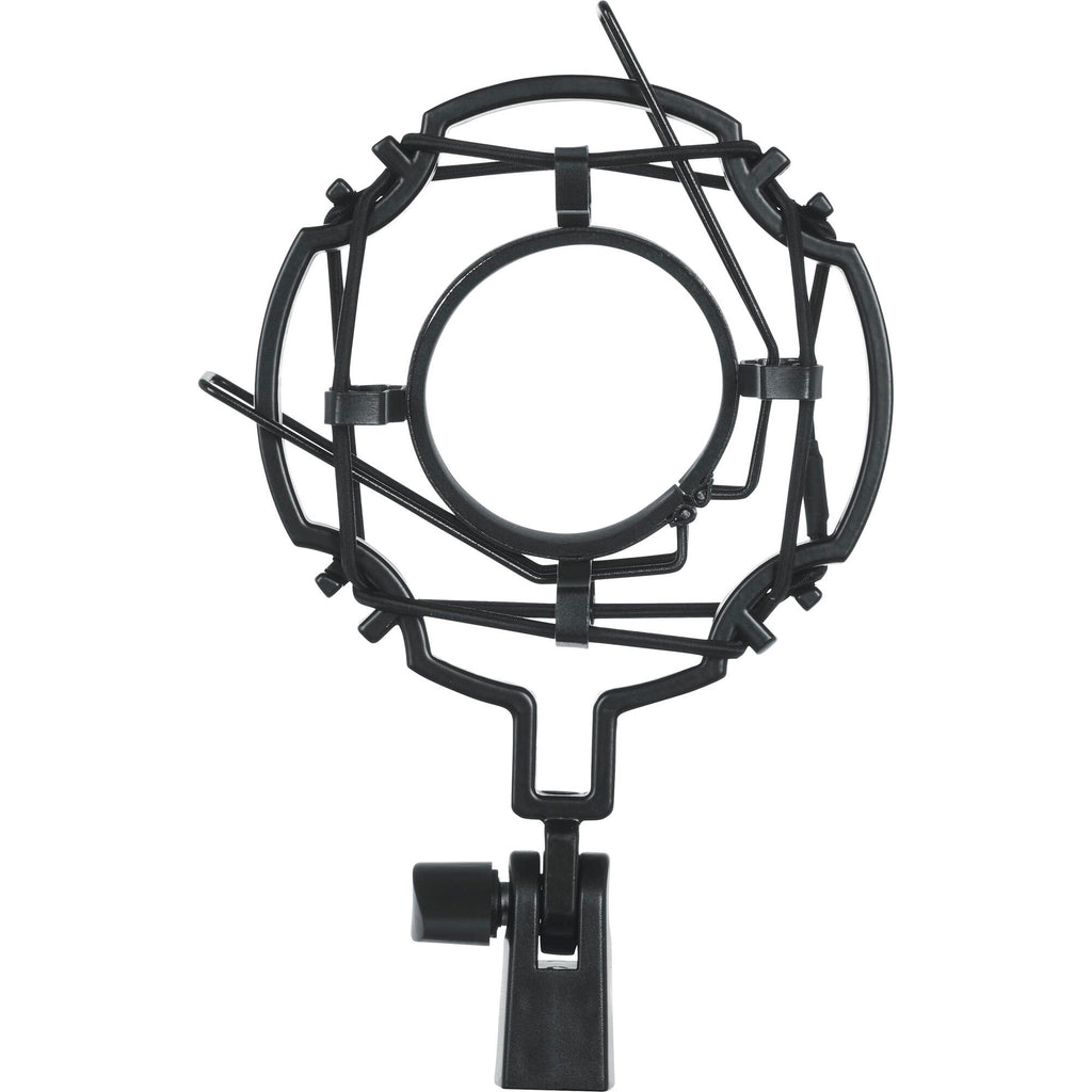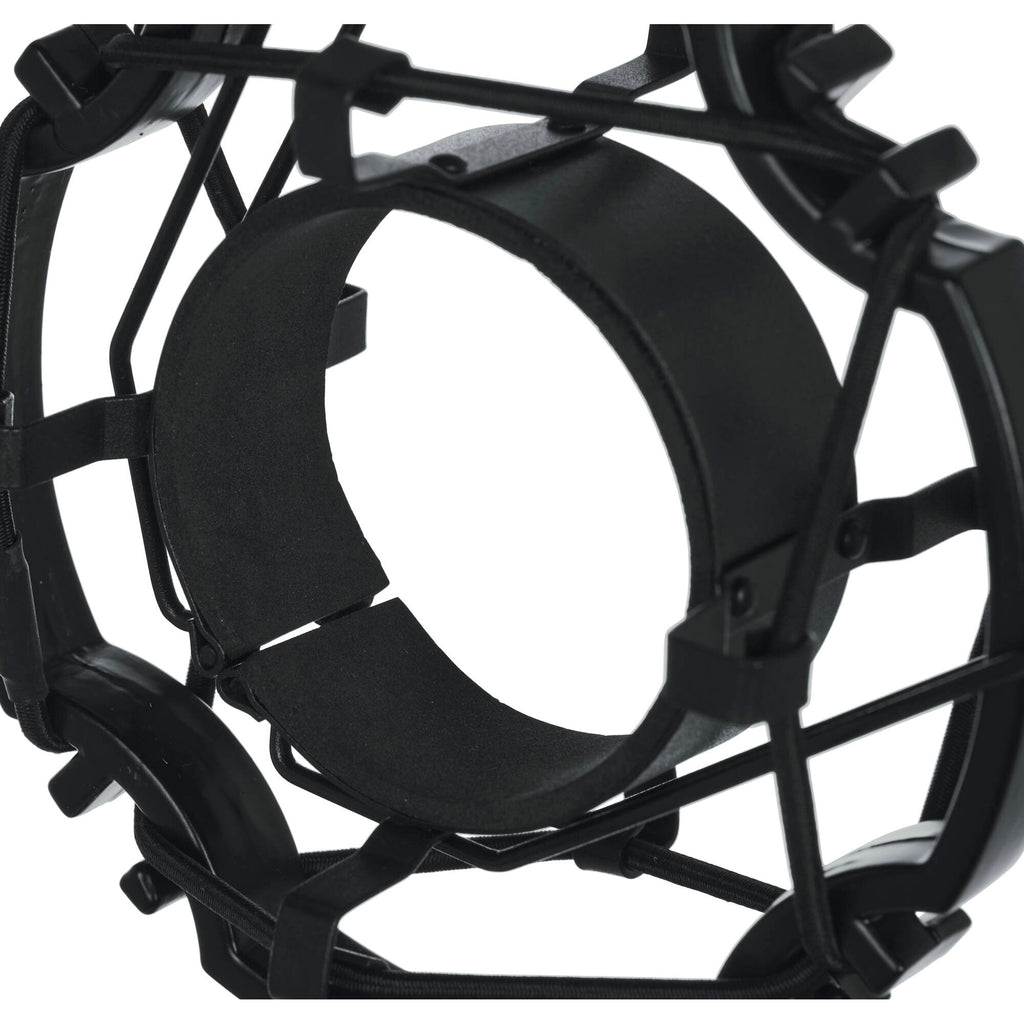 The black, powder coated steel mount features an angle-adjustable 5/8-27" thread ready to attach to a standard mic stand. The inner ring that secures the microphone adjusts to accommodate larger studio mics ranging from 55 to 60mm (2.17 to 2.36") in diameter. A sturdy spring clip opens and closes the ring while an EVA foam interior protects the mic from scratches.