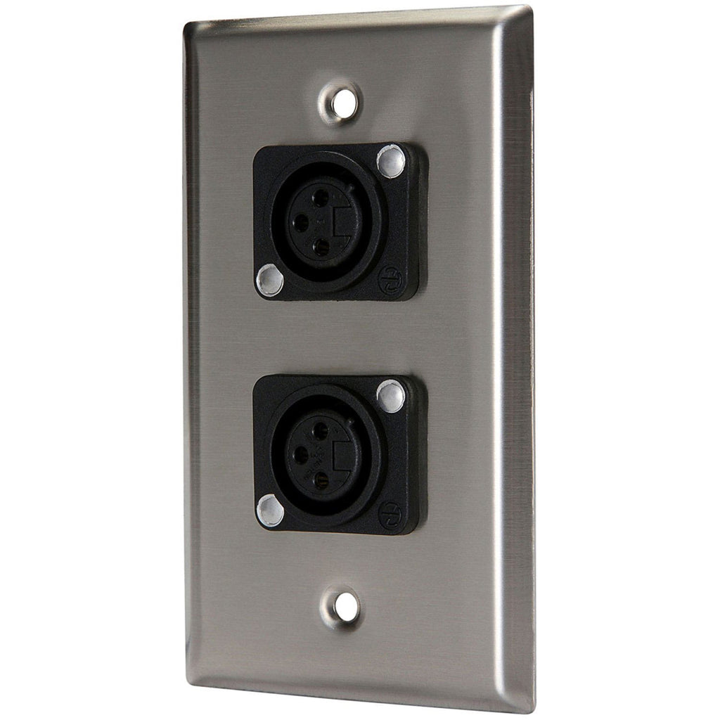Wall Plate - 1 Gang - Dual Plastic Female 3-Pin XLR Connectors - Stainless Steel