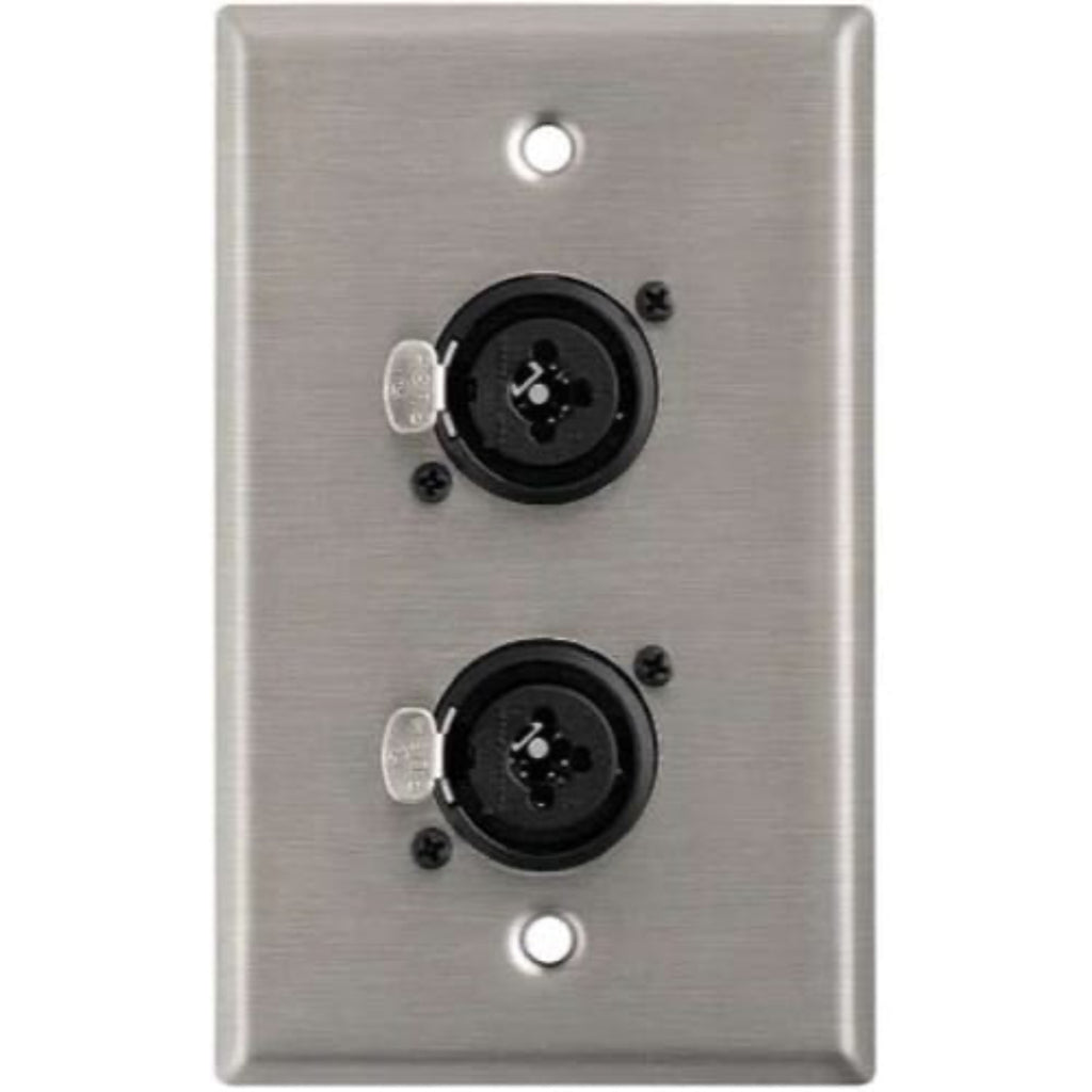 Wall Plate - 1 Gang - Dual Combo 1/4" TRS/Female 3-Pin XLR Connectors - Stainless Steel