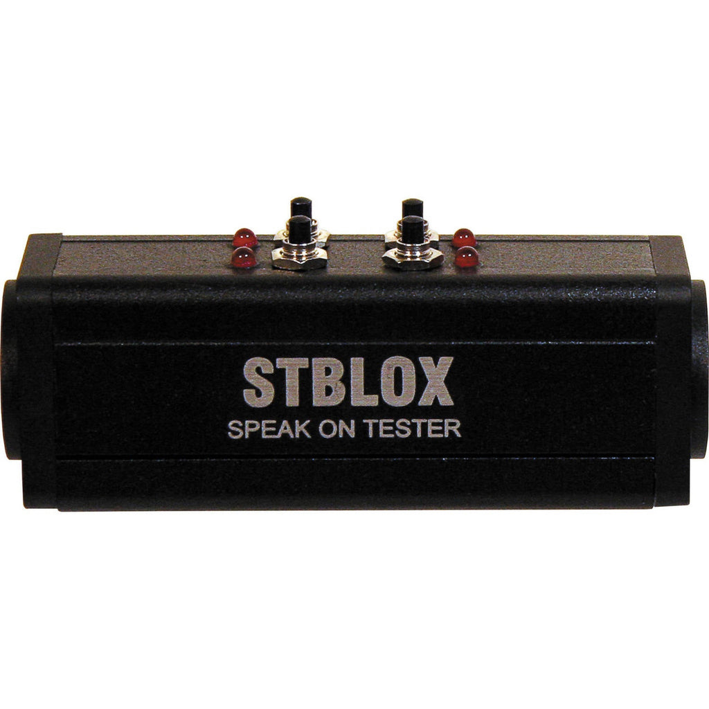 The RapcoHorizon STBLOX Speakon Cable Tester can test 4-pole speakon cables for shorts or open circuits. The tester features an NL4MP input and an NL4MP output.