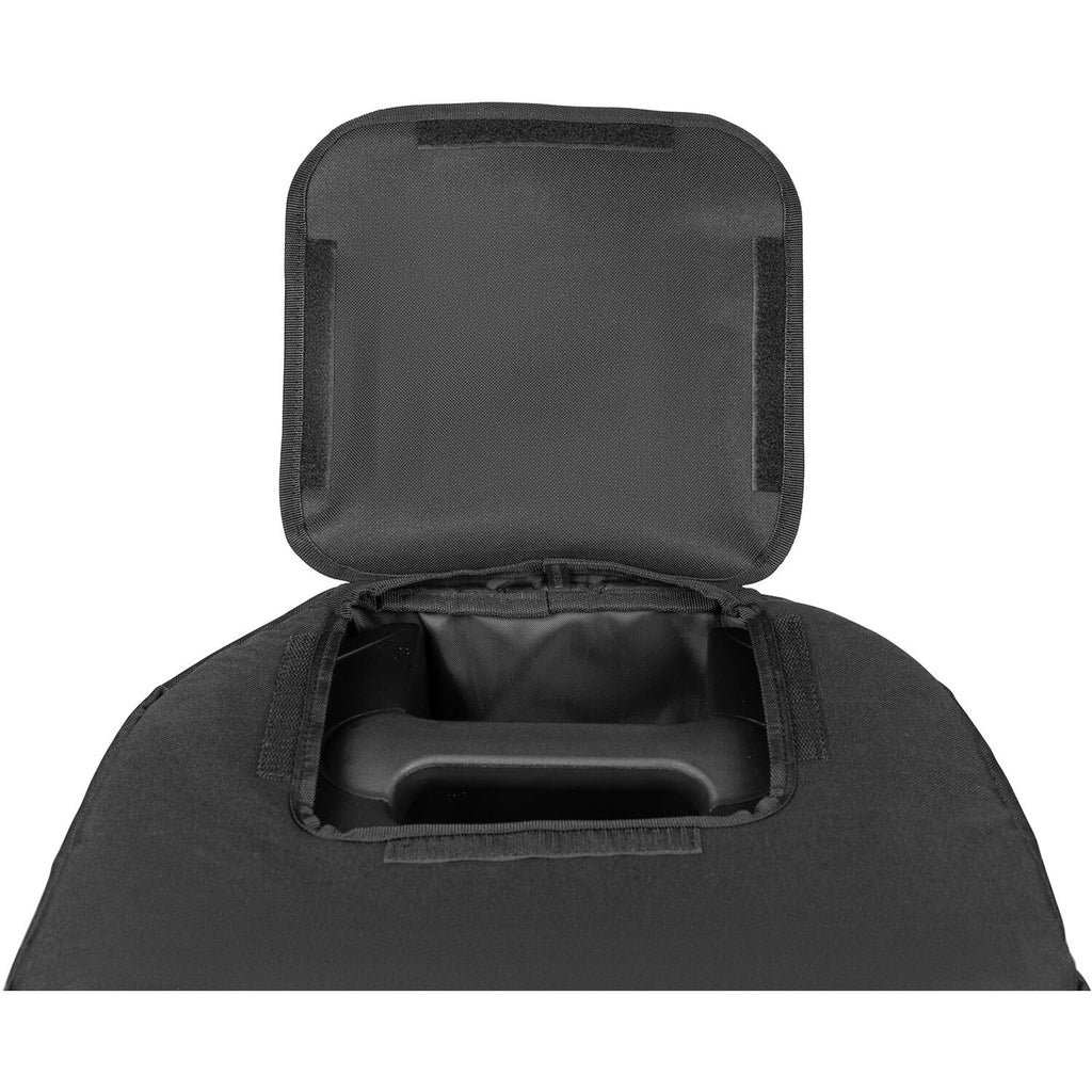 Protect your speaker system from on-the-road wear and tear with the black JBL Bags Slip On Cover for EON712 Loudspeaker, a tough, water-resistant speaker cover made with a 600D polyester exterior fabric and a soft 210D polyester interior fabric with 0.4" of foam padding for extra protection. A top handle and two side panel cutouts provide access to the speaker's built-in handles and feature touch-fastener closures. The cover sports a JBL Professional logo on the front.