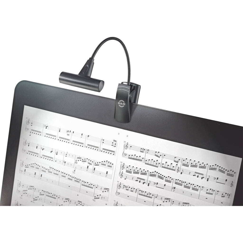 The K&M 12247 T-Model LED Flexlight is a stand light for reading music on stage. Its clamps stretches to 25mm so it can affix onto a wide variety of surfaces, such as music desks and table tops. The lamp can be positioned by means of its gooseneck.