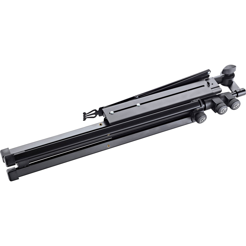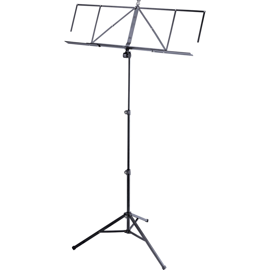An elegant music stand with an extra-wide music desk. Thanks to 8 additional sheet holders, the music desk can be enlarged up to 31.5". Suitable for large or small scores. Die-cast zinc mechanism locks desk smoothly and securely at the desired angle. Three-piece compact folding design.