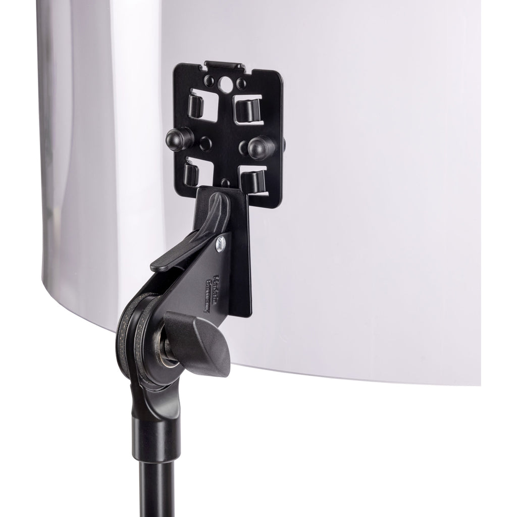 In keeping with the European Union directive on noise abatement aimed at orchestras, the concave plexiglass shield provides hearing protection for the musician stationed in front of other performers. The stand can be used on both sides, depending on requirements. The stable tripod construction affords safe usage and a long product life. The shield und rsquo;s practical prismatic und raquo;V-block und laquo; connector makes it quick and easy to connect to the stand.
