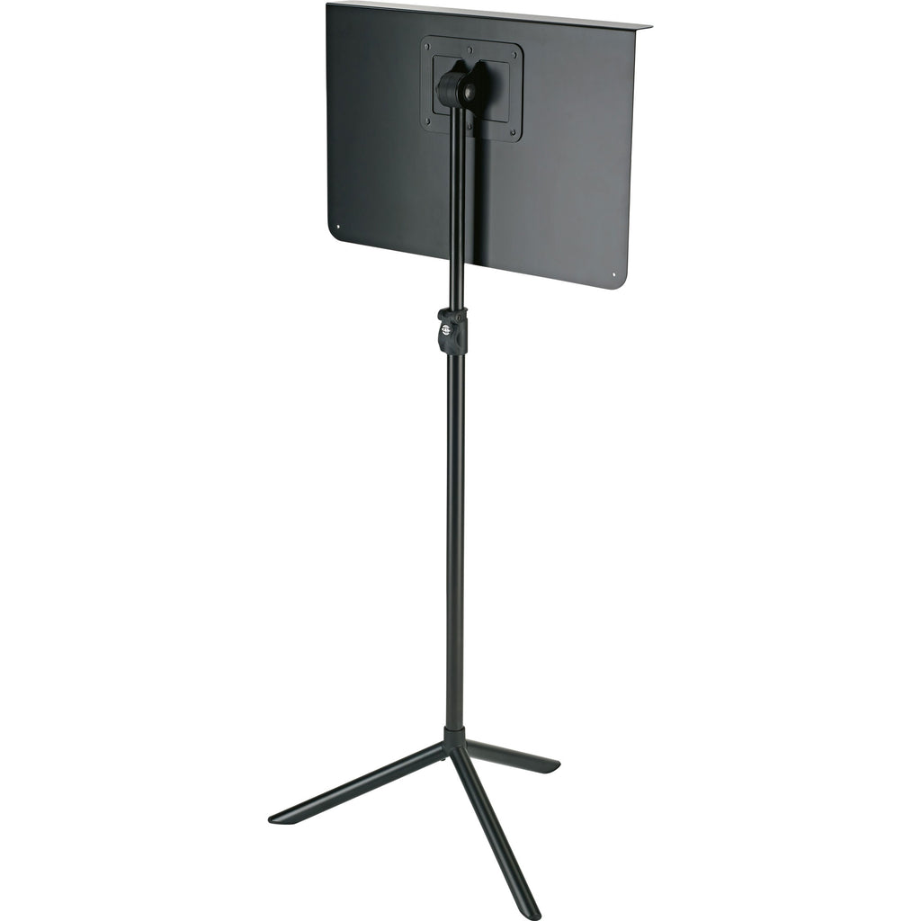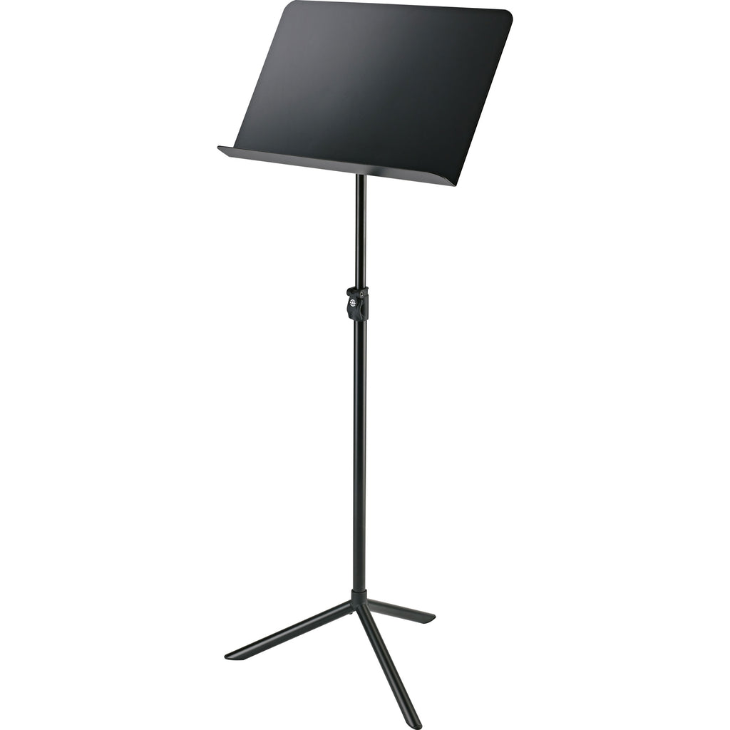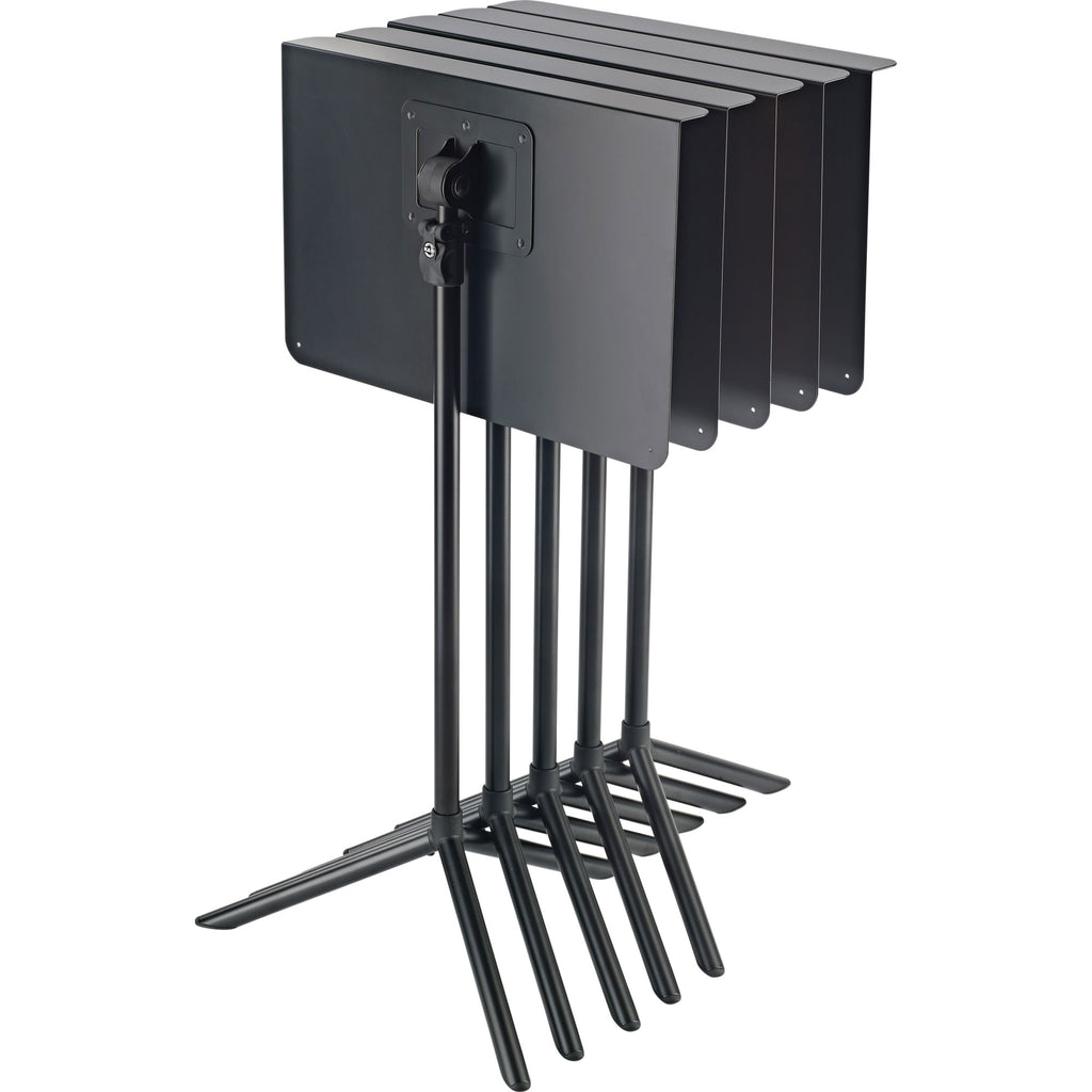 Stackable orchestra music stand with a contemporary look. This music stand has been specially designed for venues such as schools, concert halls, halls etc. It is absolutely ideal for whenever several orchestra music stands need to be set up and cleared away quickly or when storage space is limited. The minimum stacking distance is only 2.8". Height adjustment is very easy by just using the clamping lever. The tension of the lever can be adjusted to your needs. The height can be continuously adjusted between 29.9 and 51.2". The angle of the music stand desk can also be adjusted continuously. Trolley 11935-000-55 for up to 12 orchestra music stands is also optionally available for transport and storage.