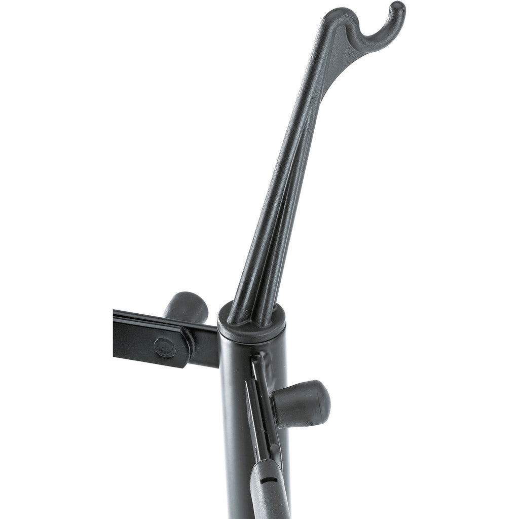 The cello stand 14110 is a high quality product. The stable support arms have a protective rubber coating and it can be folded easily and quickly for transport. The newly developed V-shaped base for the endpin means it is easy to position the instrument securely in the stand. The quality workmanship and robust materials guarantee stability and a long life. The integrated bow holder is a very practical addition.