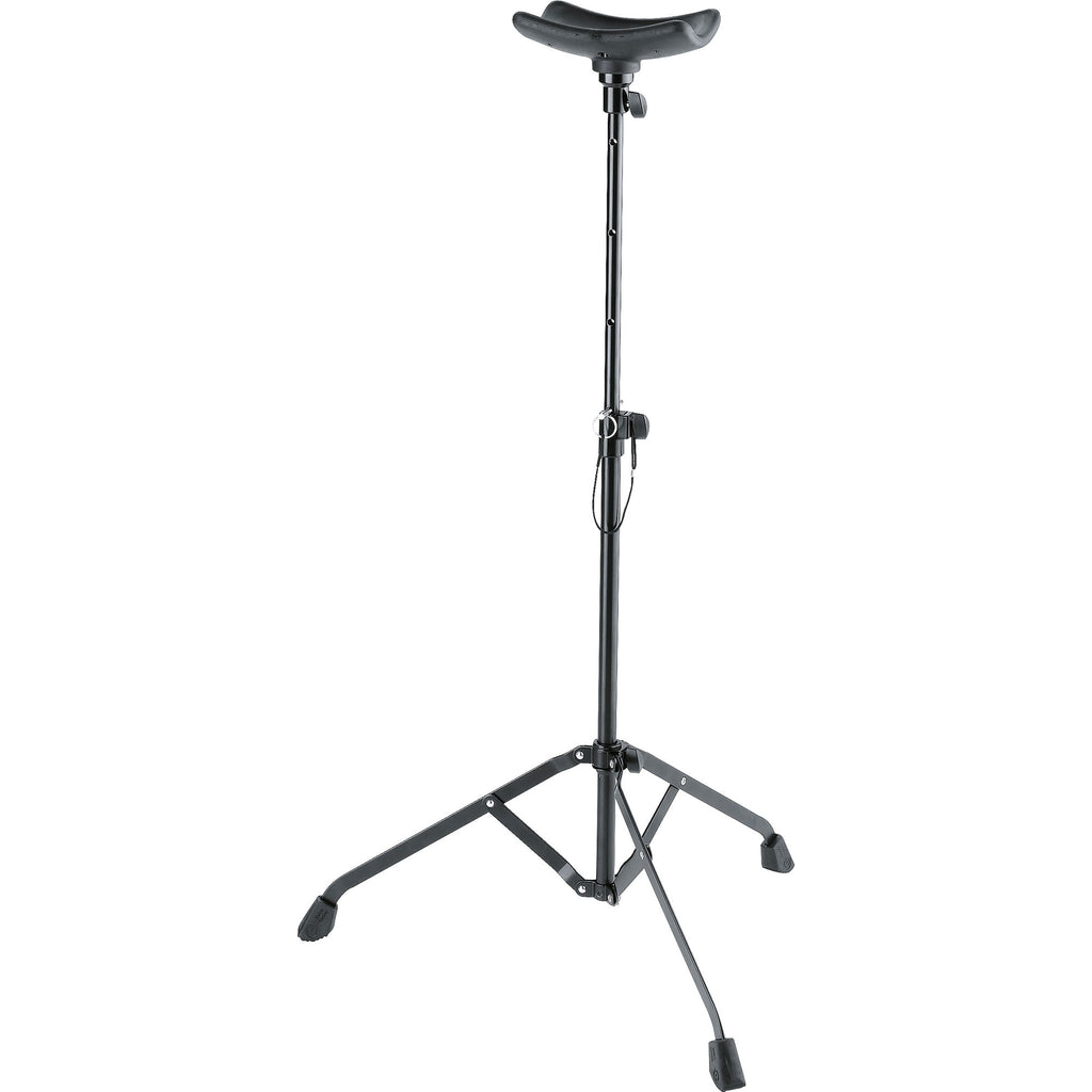 For all tuba models. Wide base construction. Easy to set up and fold. Non-marring height-adjustment mechanism. Instrument support rubber coated.