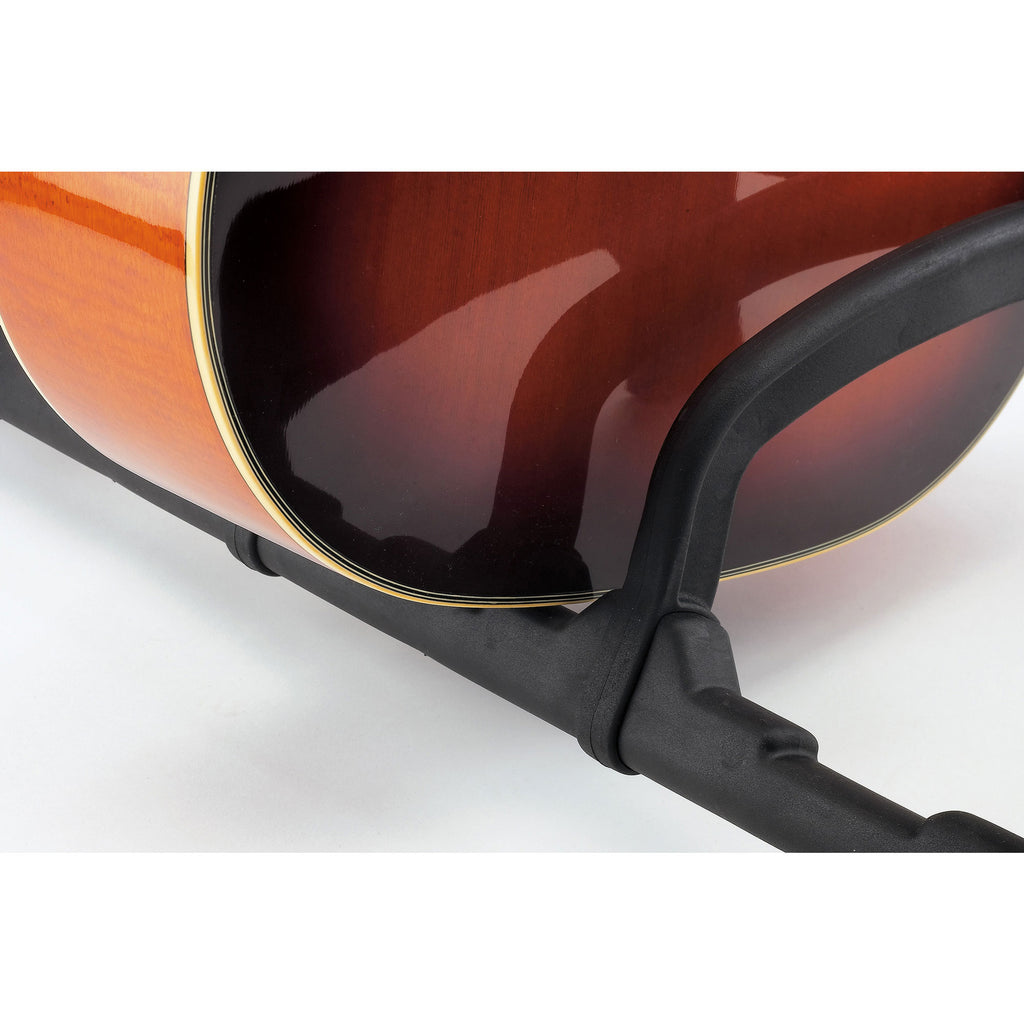 - Special features: Protective bars prevent damage from bumps or knocking; additional slots for electric guitars; holds the guitar's neck without touching the strings; integrated pick holders