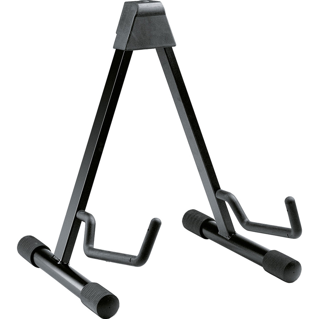 For acoustic guitars. Stable, sturdy, simple and easy to adjust and fold. Width adjusts from 8.66 to 13.78". Support arms are covered with exclusive non-marring material to protect instrument finishes.