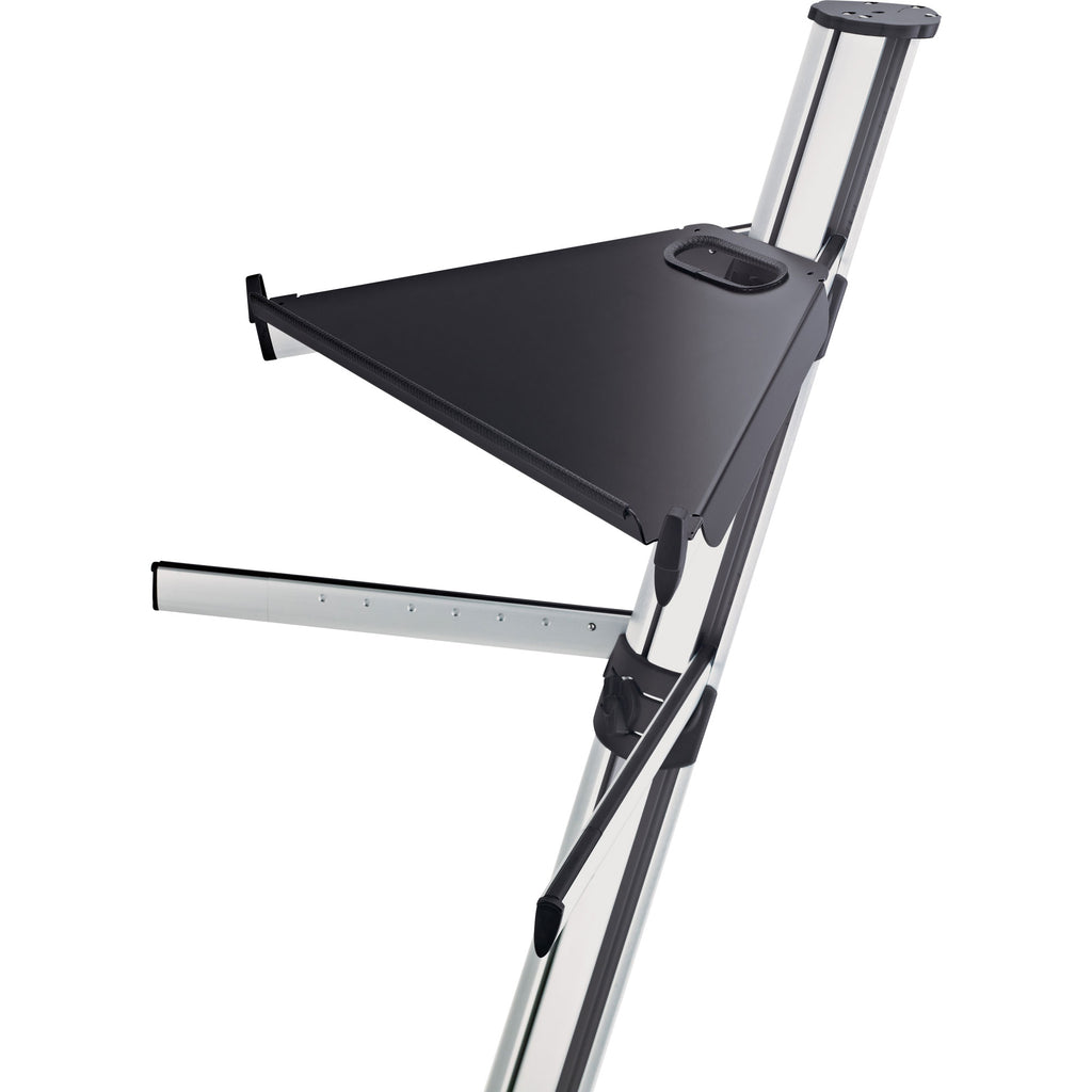 By placing the tray on the upper support arms of the Spider Pro now even smaller synthesizers, controllers, drum machines etc. can be used. The integrated handle can also be used for cable management. The equipment stop with an integrated edge protective strip and the anti-slip rubber end caps provide extra hold. And to top it off the tray only weighs 2.2 lbs.