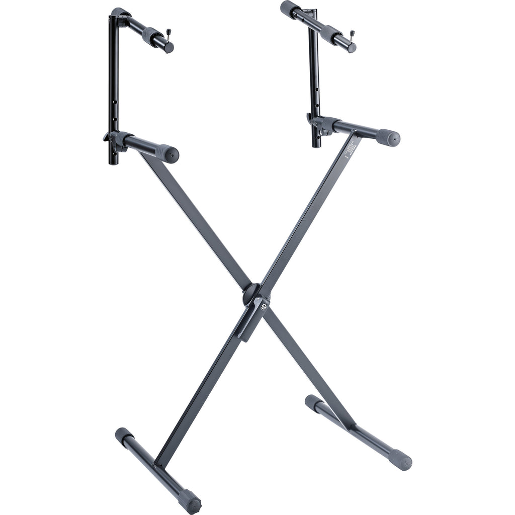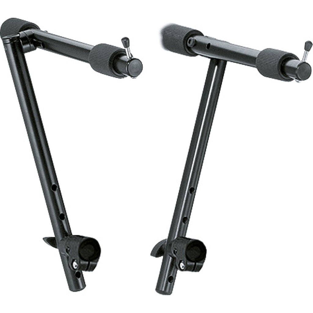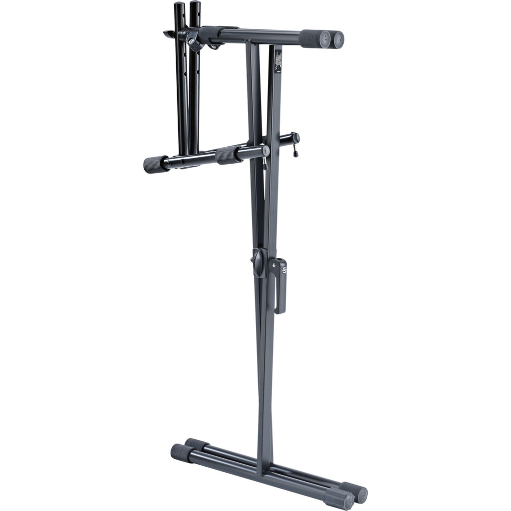 Optional stacker for 18940 and 18990, fully adjustable in height, depth and tilt to accomodate various types of instruments. All-metal construction, black powder-coated. Big non-marring pads to protect the keyboard. The new all-metal teeth locking devices ensure tight non-slip settings at any position.