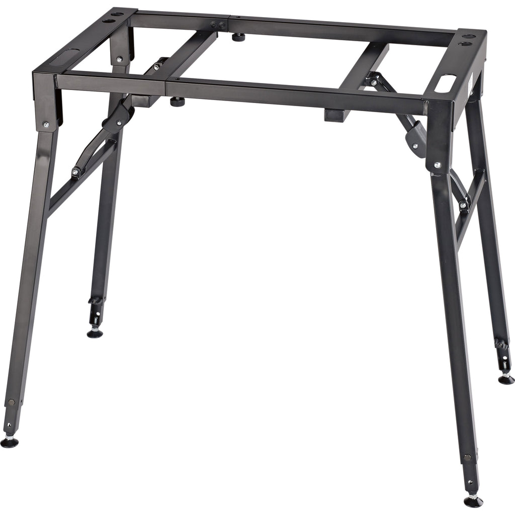 Professional, heavy-duty all-purpose stand, suitable for any use. This versatile stand has many points of adjustment, including individual height-adjustment for each leg. Rubber pads on all contact points to protect instruments. Can be used with stacker to hold additional keyboards. Folds for easy transport.