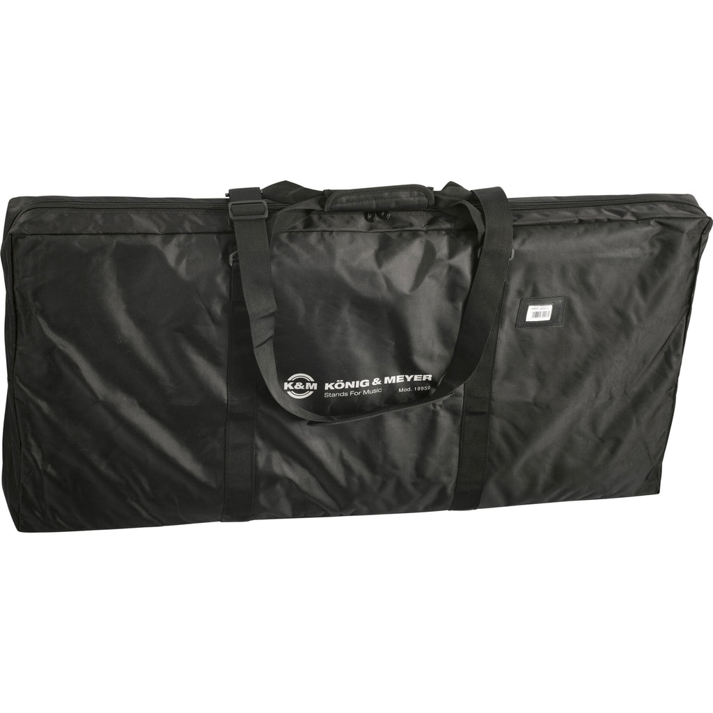 Convenient carrying case for table-style keyboard stand 18950. Tearproof nylon material, water-resistant. The case comes with padded handles and an adjustable shoulder strap. Plastic rubber feet protect the bottom of the case.
