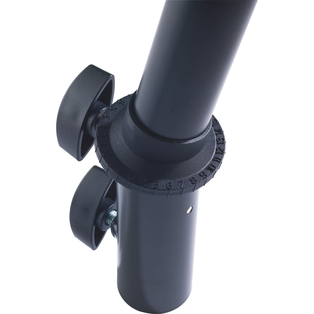 - The 19670 speaker tilt connector from K&M allows you to adjust your speaker angle by up to 15°. A hand knob allows you to tighten or loosen the connector. This connector is designed for speaker stands with tube diameters of 35mm, and has a black finish for an unobtrusive look.