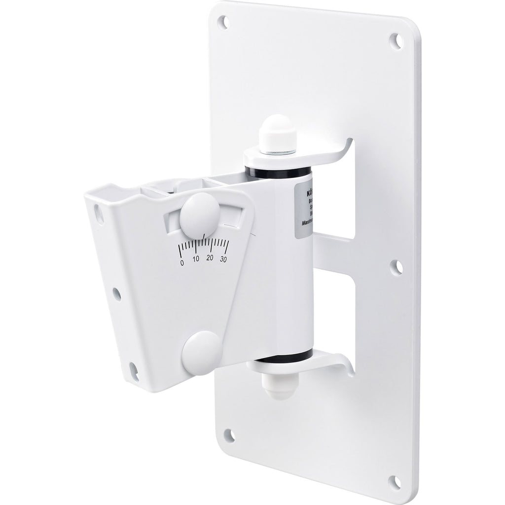 Multi-purpose wall mount for speakers with large wall plate for heavy speakers. The mounted speaker can be swiveled to the sides and tilted up to 30°. Easy mounting by convenient hooking in and screw locking.