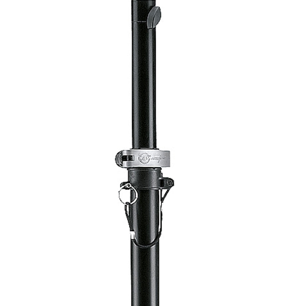 Easy to transport, lightweight aluminum lighting stand, extension rod with adapter to take a TV pin (inner extension tube diameter 1.102"). Stable tripod construction. Height adjustable with handy clamping levers and additional safety pin.