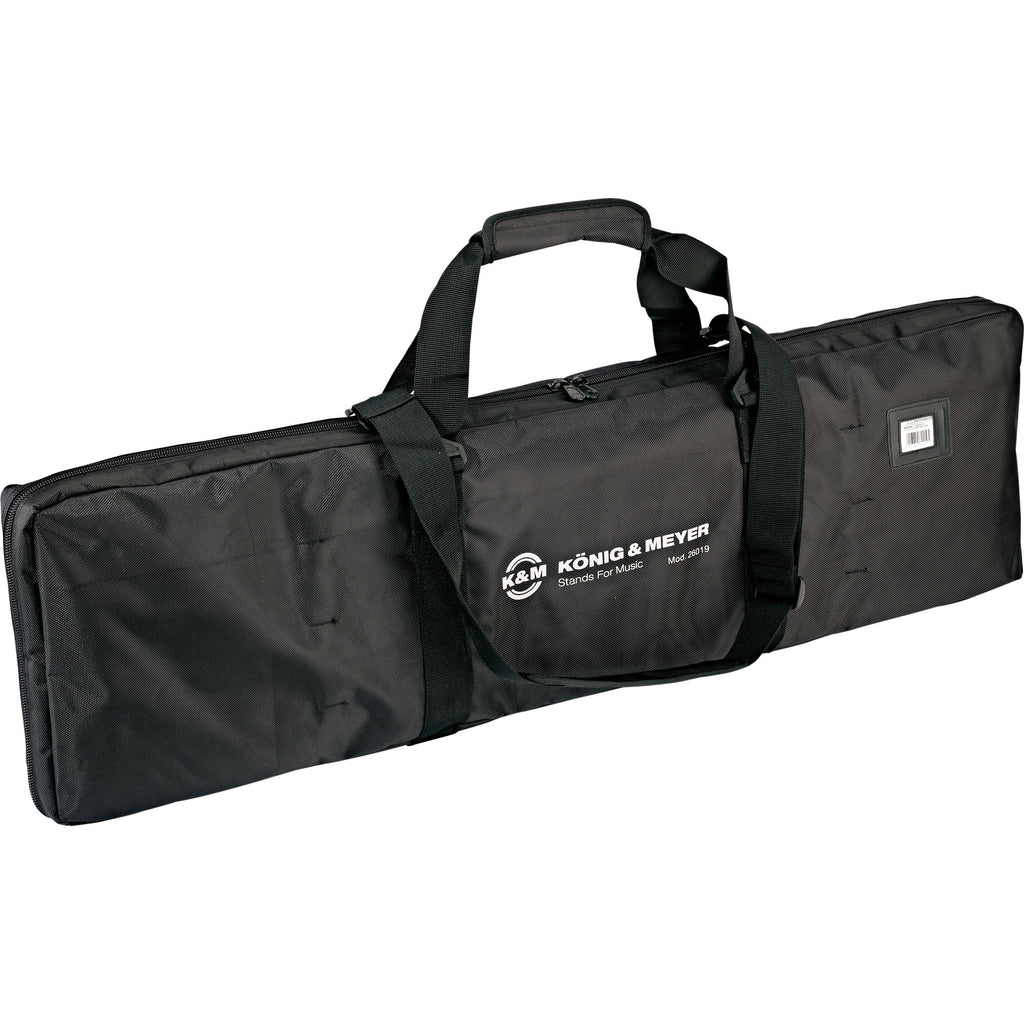 Sturdy carrying case for 3 microphone stand with round base. Tearproof nylon material, water-resistant. The case comes with padded handles and an adjustable shoulder strap. Plastic rubber feet protect the bottom of the case. 3 separate internal compartments and fixed Velcro strips provide maximum protection for the stands.