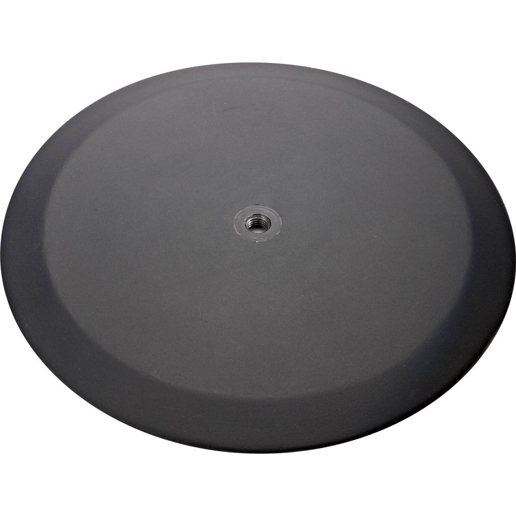 Flat round base suitable for all common distance rods and rod combinations using a M20 threaded bolt. The diameter of the round base is 17.7". Felt strips for floor protection are included. Optional carrying case 26751 is available.