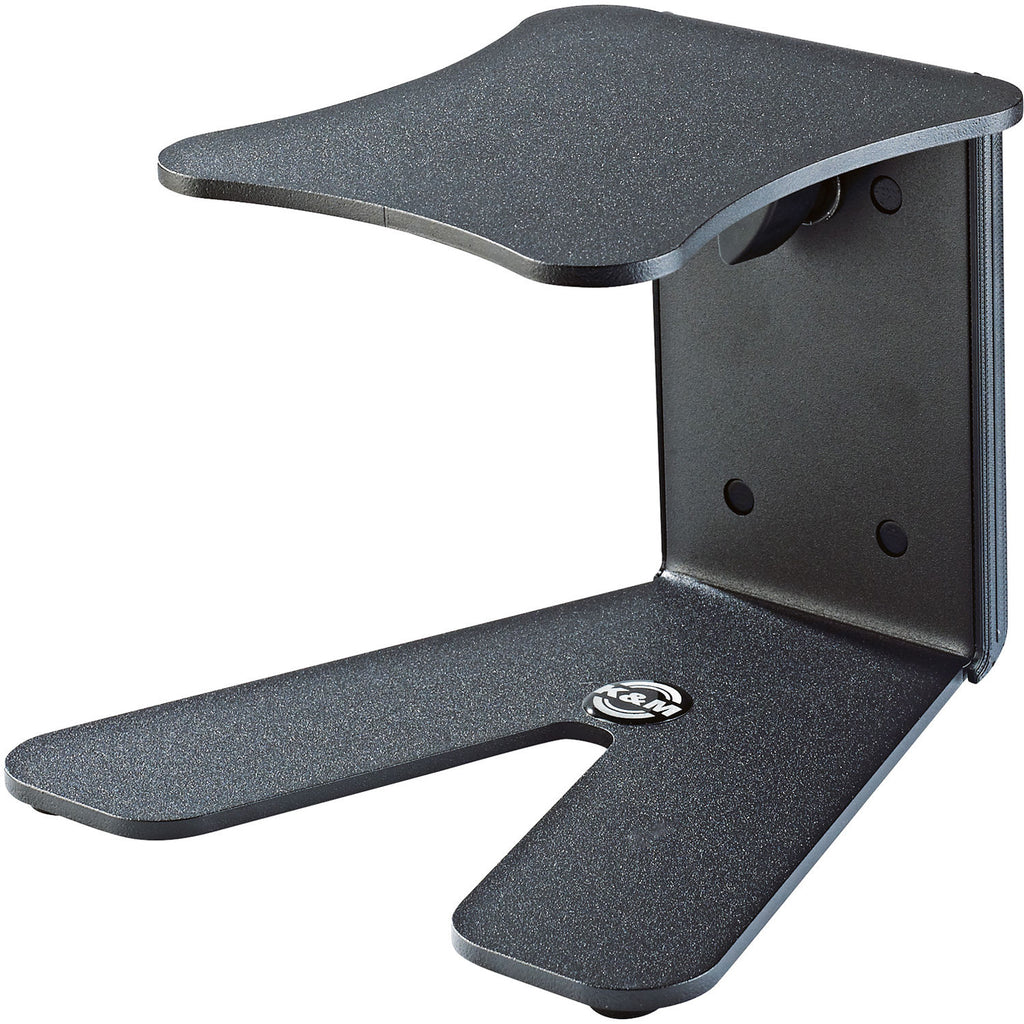 Attractive table stand for studio monitors and loudspeakers. The height adjustment is variable between 167 and 254 mm (6.57 and 10.0 in). 4 rubber pads each for floor and tray provide for stability and noise filtration. The recommended max. load is 15 kg (33 lb). The support area (tray) dimensions are 150 x 170 mm (5.91 x 6.69 in).