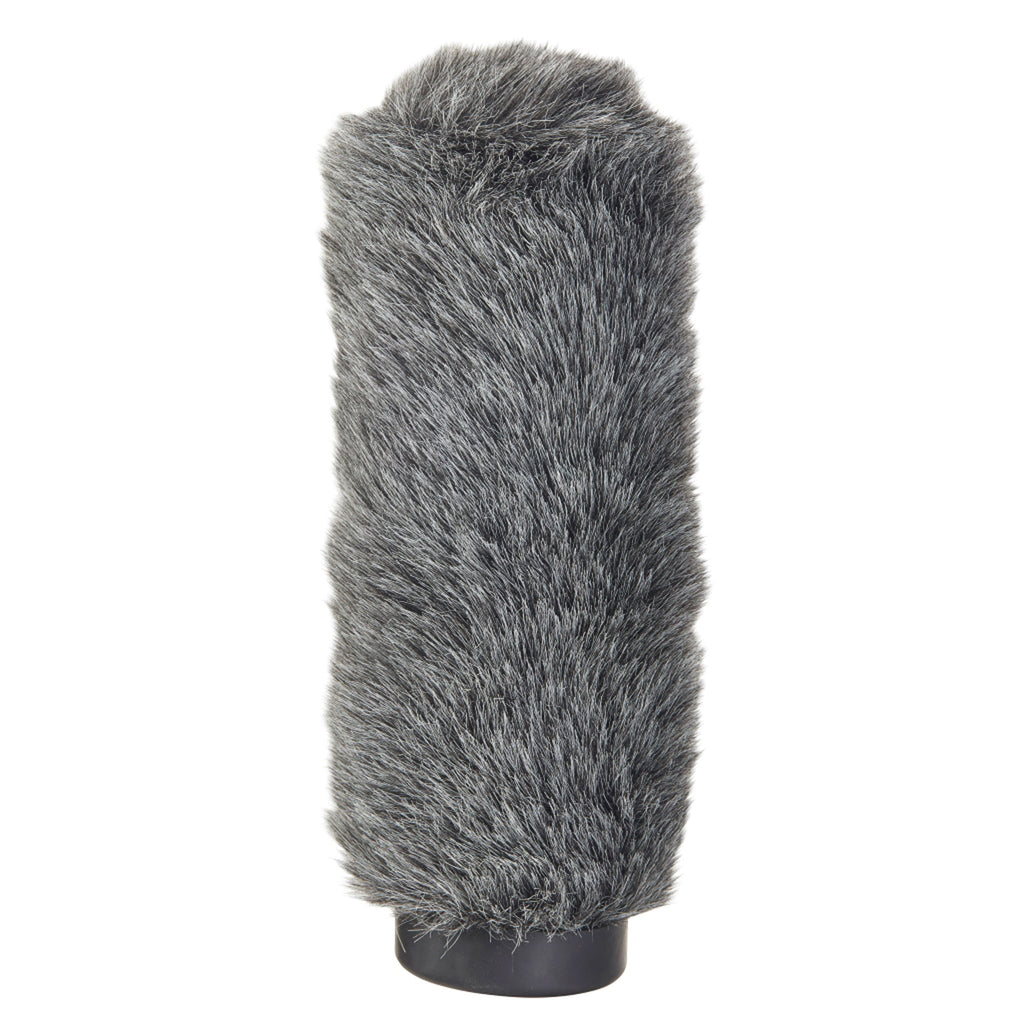 The new Fuzzy Windscreen AFW1 uses open cell foam, covered by faux fur (made of natural looking black and grey fibers.) for optimal wind-noise reduction. With a professional and unobtrusive look, it fits most common shotgun microphones.