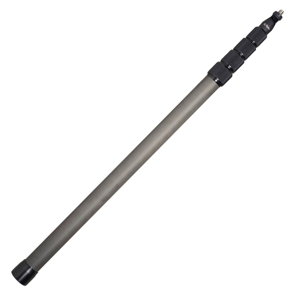 This KEG100 Avalon Graphite Boompole has a collapsed length of 2'4" | 71 cm and an extended length of 8'4" | 254cm and only weighs 15 oz | 425 g. This 5-section Graphite Economy Boompole is uncabled. The top attachment is a 3/8" - 16 male thread and the bottom attachment is a Delrin Base.