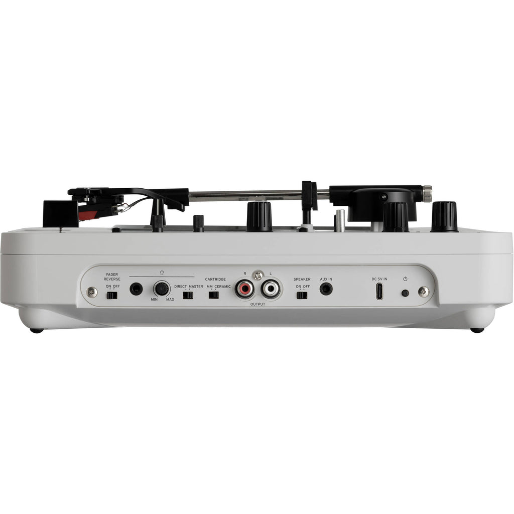 Portable Belt-drive Turntable System with Built-in Speakers, 3 Variable Playback Speeds, FX, 3 Filters, Audio Looper, Ceramic Cartridge, 3.5mm Aux In, Stereo RCA Out, and DJ Tools