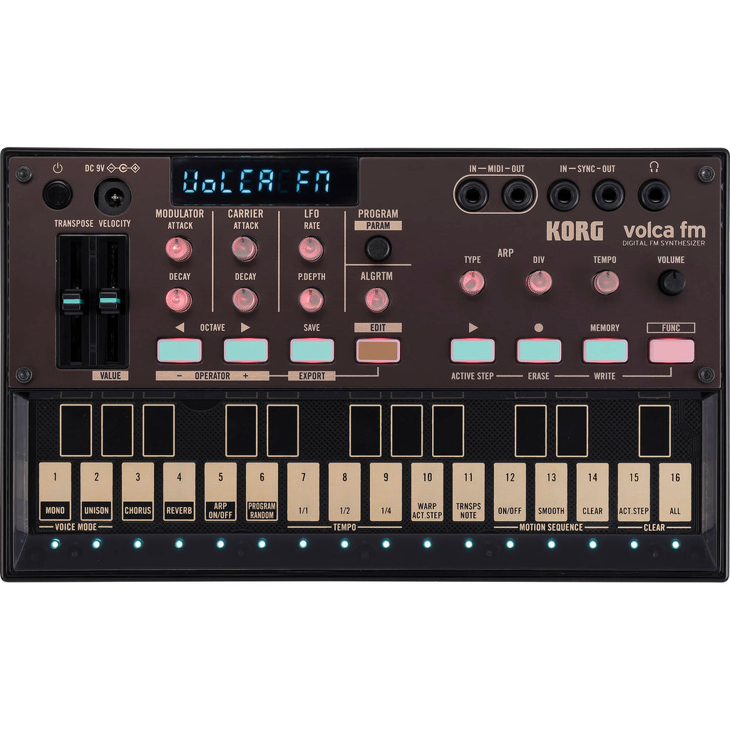 The next-gen volca fm is a powerful 6-voice, 6-Operator FM synthesizer with all 32 classic algorithms, a 16-step loop sequencer, effects and a powerful arpeggiator that perfectly reproduces the sound of the classic Yamaha DX7 and is completely compatible with SYS-EX patches for the DX7 as well.