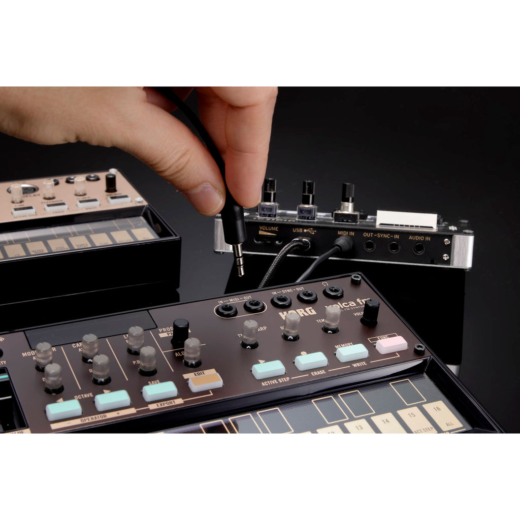 In addition to MIDI IN the new volca fm also includes a MIDI OUT (IN/OUT 3.5 mm TRS), making it possible to use the intuitive volca internal sequencer to control other devices through MIDI, making it the perfect addition to your standalone setup. Of course, it also works well with your DAW of choice thanks to note, control, and clock receipt via the MIDI IN.