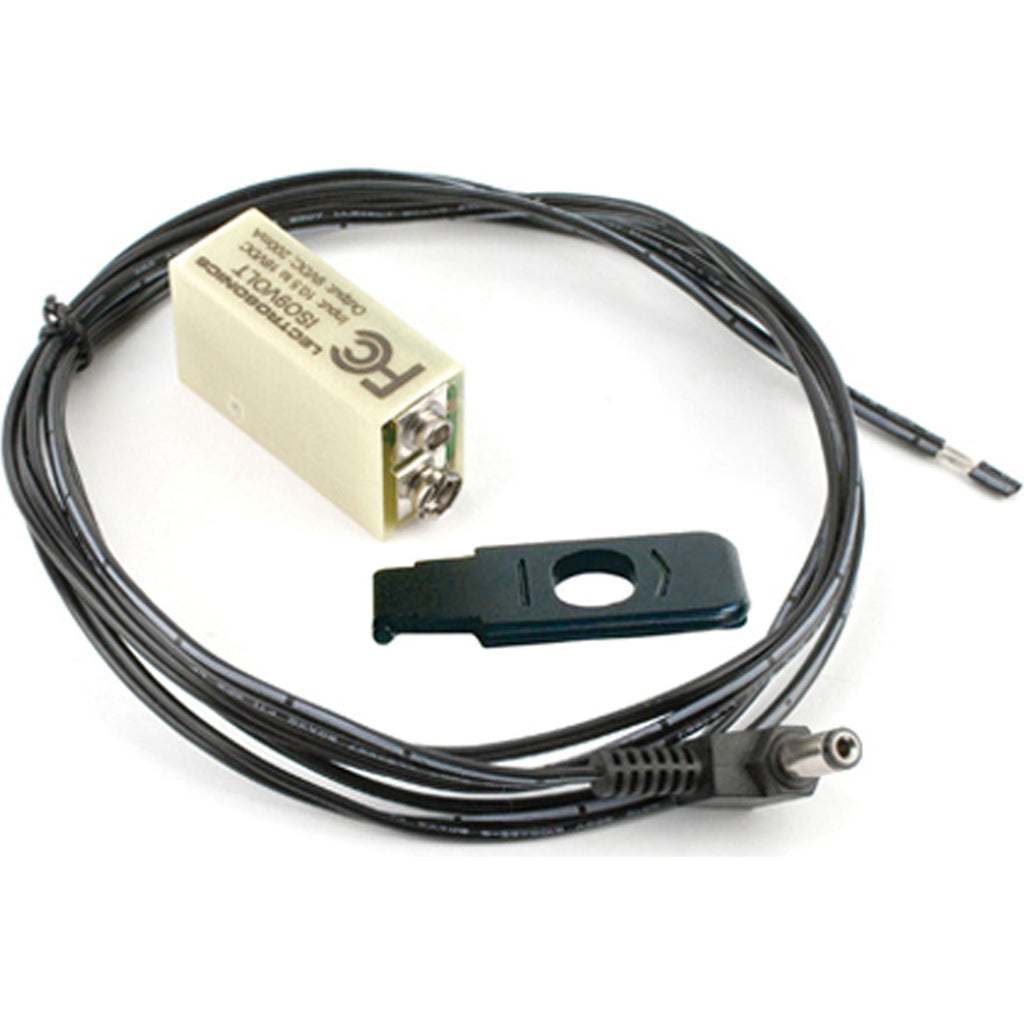 The ISO9VOLT battery eliminator allows Lectrosonics wireless transmitters with hinged battery doors designed for 9 volt batteries to be operated from external power sources. 10 to 18 volt DC is converted to regulated 9 volt DC to power the transmitter at the battery terminals inside the battery compartment. The modified door exposes the connector for the external power source yet still operates with regular dry cell batteries. The unit can supply up to 200 mA to work with the 250 mW transmitters. It is fused and protected from reverse polarity.