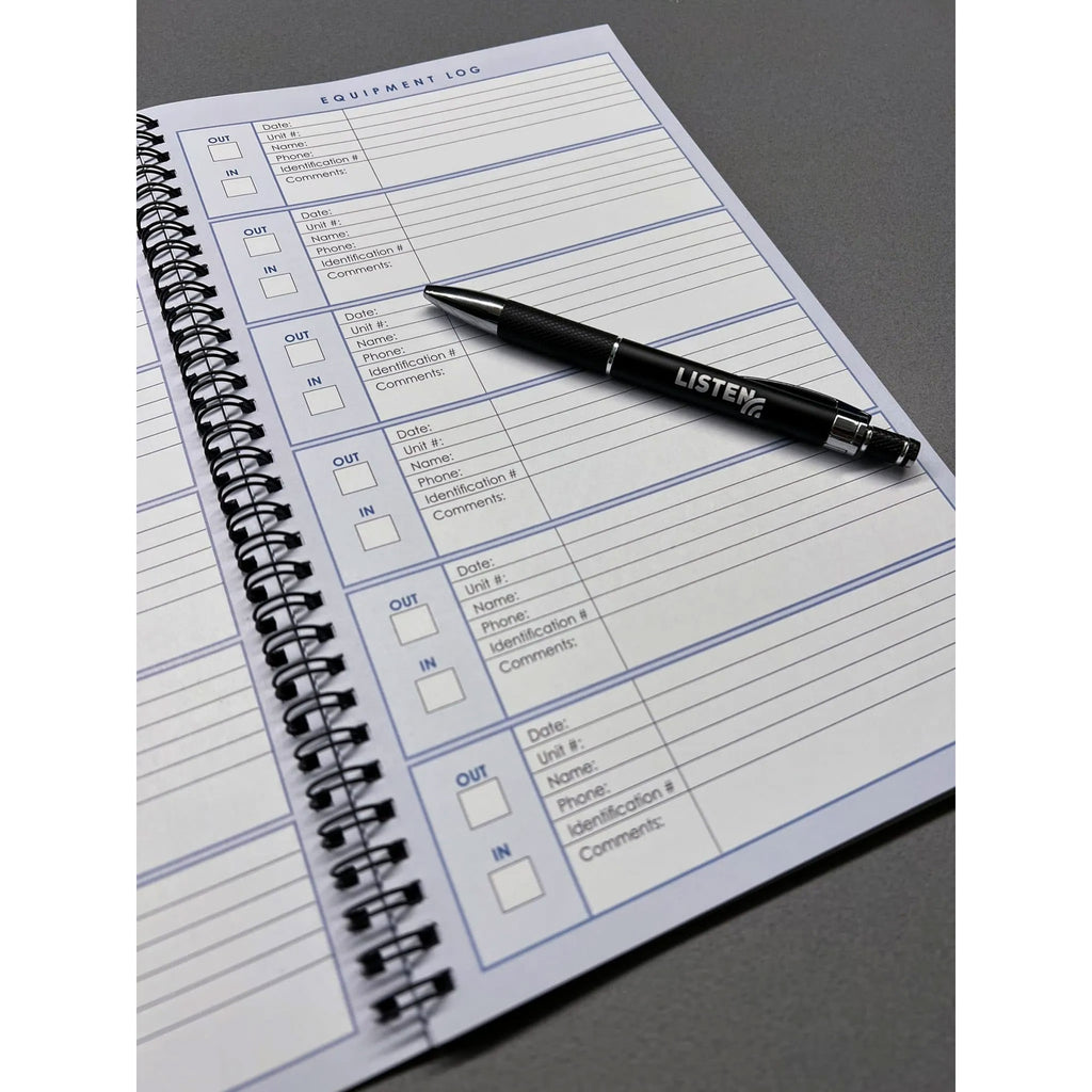 Keep track of all of your assistive listening devices and their usage with the LA-904 Log Book. Each book features space for up to 582 checkout and return entries, and the 11 x 7 x 0.5 in. (27.9 x 17.8 x 1.3 cm) size makes it easy to store in between uses.