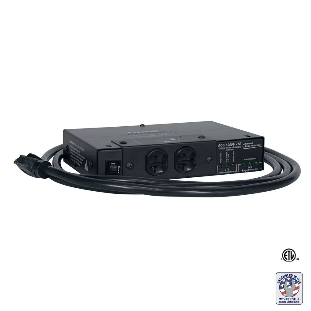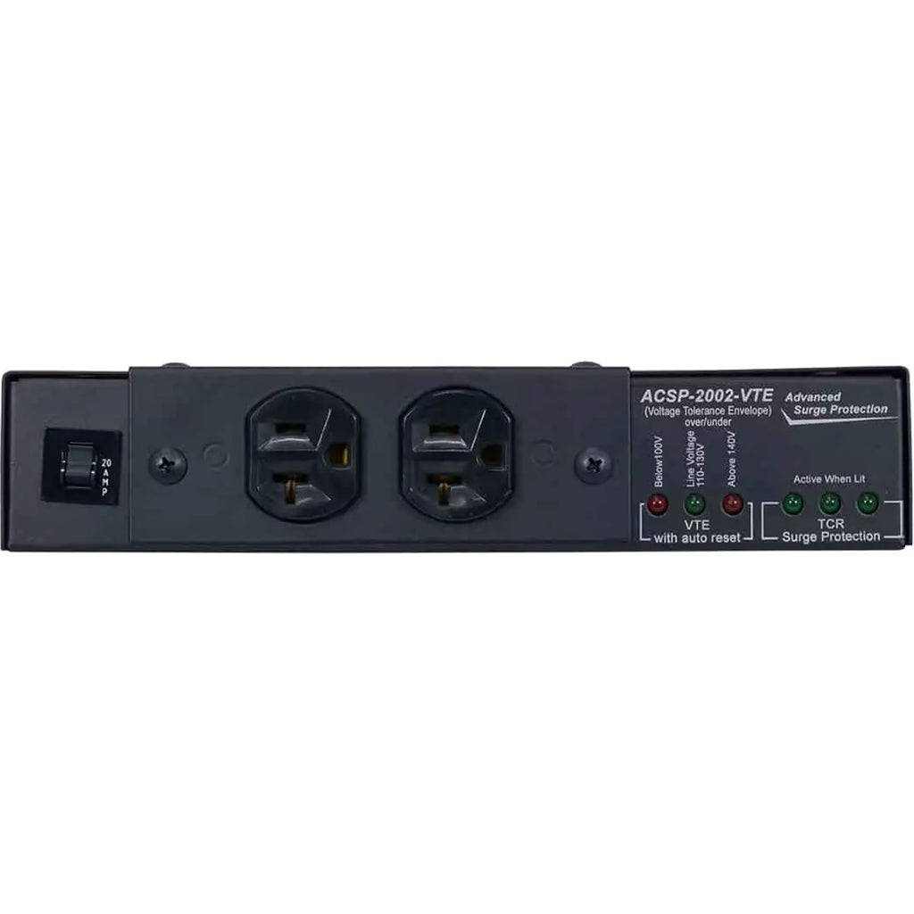 Model ACSP-2002-VTE: includes VTE over/under protection (automatically turns receptacles off when line voltage drops below 100V or rises above 140V).