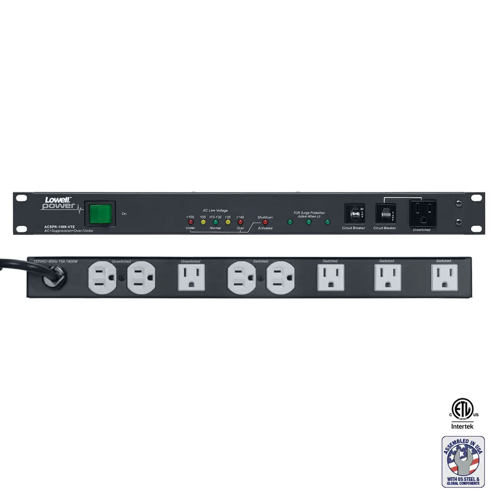 Variety of 19" rackmount panels with (15A) AC power outlets and options for different levels of surge protection or over/under voltage protection let you select exactly what's needed to support the equipment specified for each project, while staying within budgetary guidelines. All units are ETL Listed in the US and Canada (to UL Standard 60065) and are made in the USA with domestic and foreign parts.