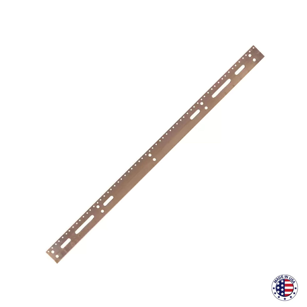 Vertical Grounding Bus Bar (GBB-series) is fabricated of solid copper for proper grounding of connected equipment. The series also functions as a wire lacing bar with a wide array of lacing slots and wire tie-down points to provide organized vertical wire management within a rack or cabinet. Choose model GBB-36 (36"L) for use in racks with panel mounting space of 19-44U or model GBB-72 (72"L) for use in racks with panel mounting space of 44U or greater. Each bar features tapped holes (10-32) on EIA spacing along one side and has 0.312" holes and obrounds size 0.375" x 1.5" and 0.375" x 3" for installation to the mounting rail supports (hat sections) on Lowell adjustable-rail racks. Screws (1/4-20x5/8"), insulation washers and slide nuts are included for installation.