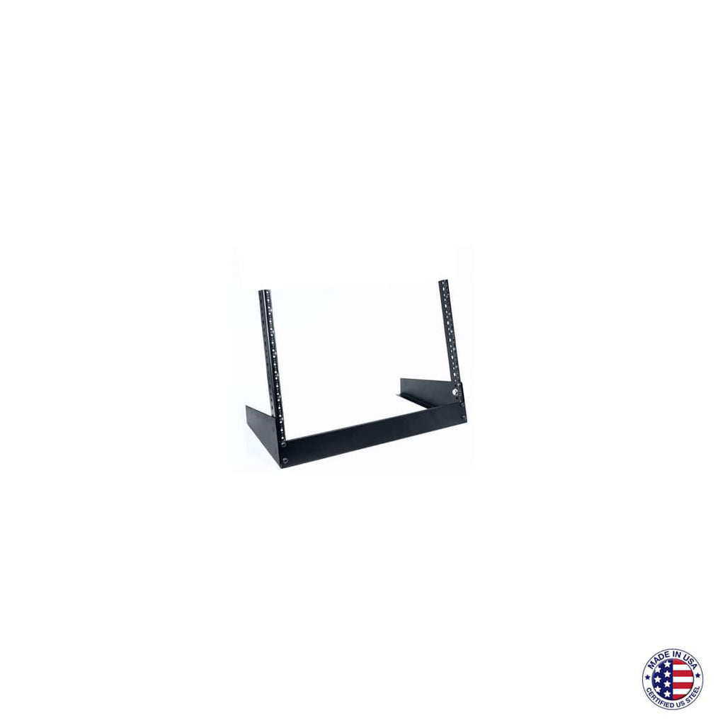 LRS Series desktop racks have a small footprint with just enough rack space to hold smaller AV/IT equipment arrangements where space is limited and a full sized rack is not required. The racking space is on a 10 degree slope for easy viewing from a seated position. Rails are tapped 10-32 and feature a printed RU scale to facilitate set-up. Smooth black powder epoxy finish. Ships unassembled. 8 and 12 rack units.