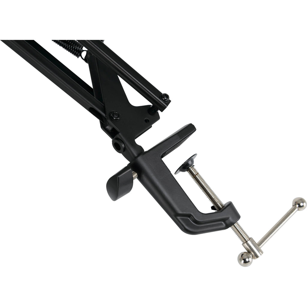 The Mackie DB-100 Desktop Microphone Boom Arm is an accessory that anyone working with the spoken-word can employ at their desktop setup. It's a boom arm that attaches to your desk, thus removing any need for a bulky, intrusive mic stand in your home studio.