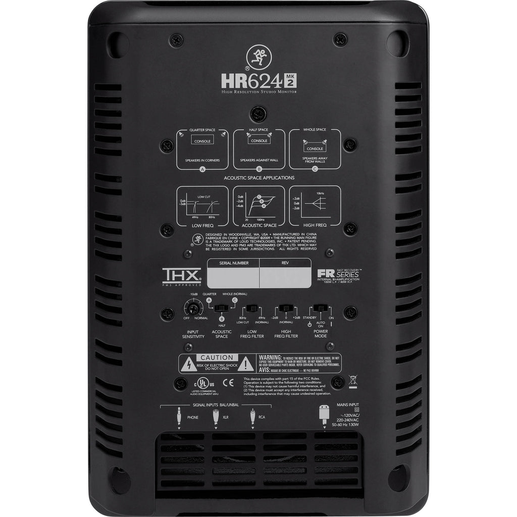 The HR624mk2 from Mackie is a high-quality active two-way studio monitor, perfect for stereo or surround mixing applications. The monitor is THX pm3-certified, great for creating high-definition audio for video, film, and video game projects. The monitor has a 6.7" low-distortion woofer and a 1" titanium dome tweeter to provide clear, lifelike sound across a full frequency spectrum. Internal amplifiers provide 140W of total power for a strong performance
