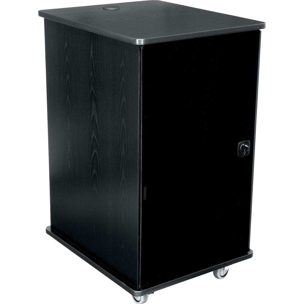 The MFR-1627GE MFR Series Mobile Furniture Rack from Middle Atlantic provides a good solution for mobile presentation systems. This rack features premium bolt-through casters and rigid construction for reliability. The rack top, bottom, sides, and rear access panels are constructed from 0.75" (1.91cm) melamine. The Mobile Furniture Rack comes equipped with 1 pair of adjustable steel rackrails with tapped 10 to 32 mounting holes in universal EIA spacing, black e-coat finish, and numbered rackspaces.
